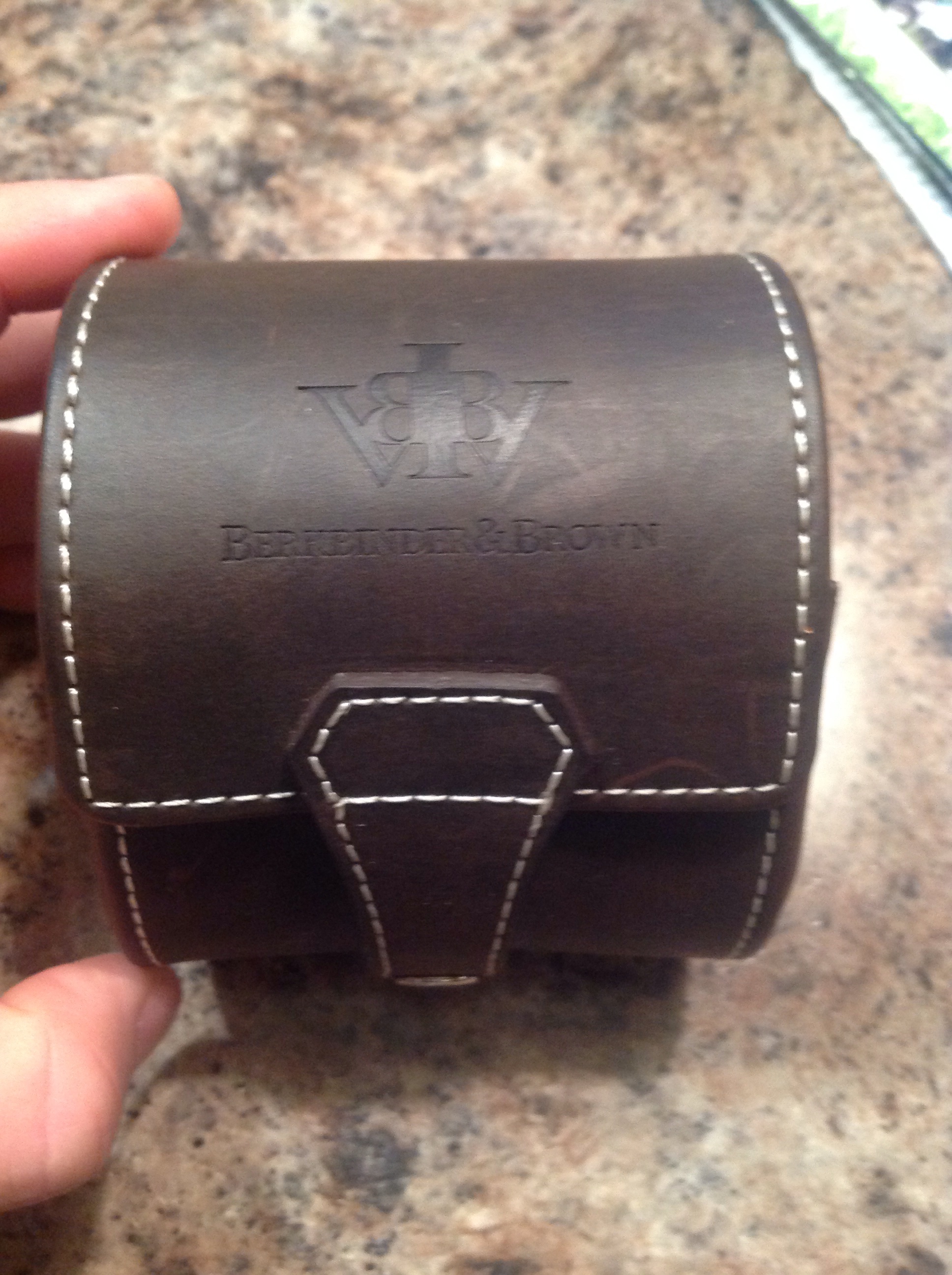 The watch comes in an awesome leather travel case. I prefer this style of case over the traditional multiple boxes that a lot of companies use. I find those bulky and a waste of storage space. The B&B leather case is the perfect size that can easily fit in a desk drawer. The case features the Berkbinder and Brown logo.