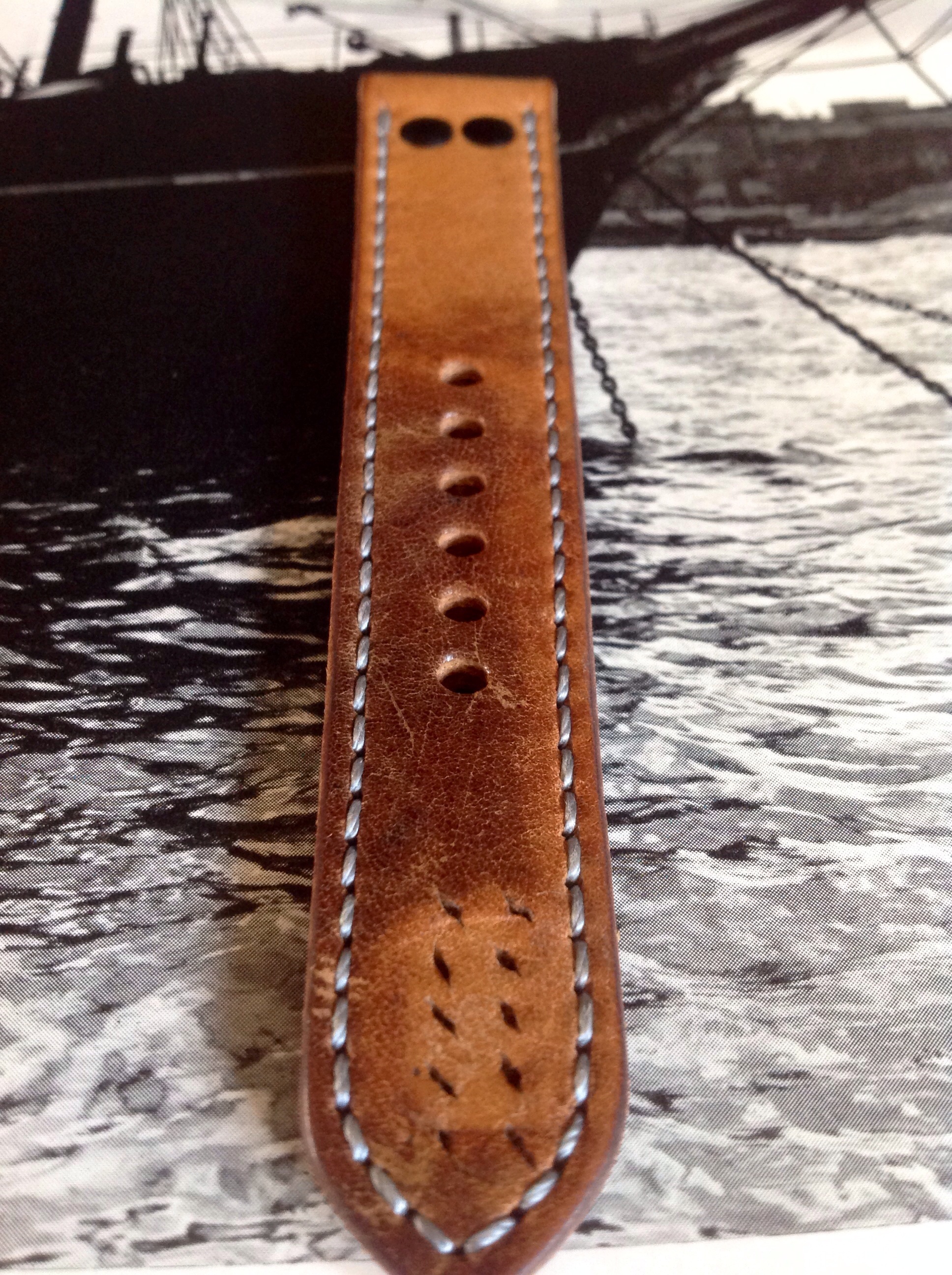 I can’t express enough how amazing this strap is and how dealing with Rob was. From start to finish it has been a great experience. Communication with Rob was great, he took my ideas/suggestions and listened to them, then he encorporated them into this strap. The strap feels great on the wrist, extremely comfortable, and will continue to get more comfortable as it is broken in. The detailing on the strap is exactly what I wanted, details that add to the vintage look and feel to the strap. The quality is top notch, this strap is made to last a lifetime and beyond. I love everything about this strap, and I can’t think of one thing about it that I would change.