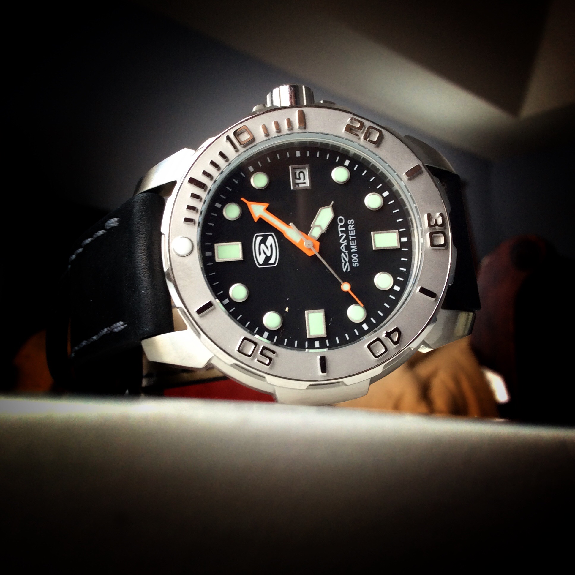 The Szanto 5101 is a nice dive watch with some really nice details for the price point. You get an awesome display box, 500m of water resistance, a nice screw down crown, great lume and a really nice leather strap. Is there anything I would change? There are a couple of things that I can mention with my nit pickiness. The second hand doesn’t quite line up with the second markers when it makes its journey around the dial. The bezel has a little too much play in it, I would like to see it a little tighter. This is a really nice offering for Szanto at $350.00 you do get a lot of watch for the price. I still believe that you can keep this watch at this price point and add an automatic movement.