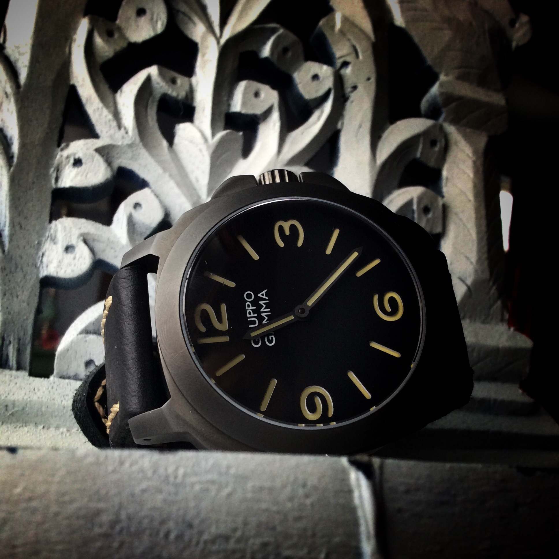 The Vanguard G-12D is a very nice offering from GRUPPO GAMMA. I love every detail of this watch. It’s well made from case design, to the beautiful gunmetal PVD coating, to the leather straps, every detail has been clearly thought out here. There is nothing that I have found on the G-12D that I can complain about. At $370 you get a lot of watch for you dollar. You get 2 straps, a impact resistant travel case, an automatic movement watch with amazing lume and PVD coating. I am a huge GRUPPO GAMMA fan now as a result of my time with this watch. The only things that I would add to this watch, not that GRUPPO GAMMA did anything wrong, but just because of what I like. I would add a seconds hand as a subdial and I would stamp the strap with the skull logo.