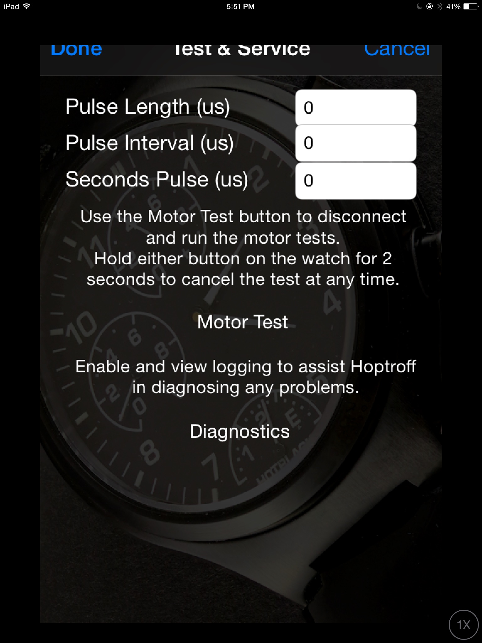 There is also a Test and Service- diagnostic menu that you can test the watches motor which checks all the dials by moving every hand on the watch. Not only is it helpful to run the tests, but is also so cool to watch the hands move all around, very sci fi esque.