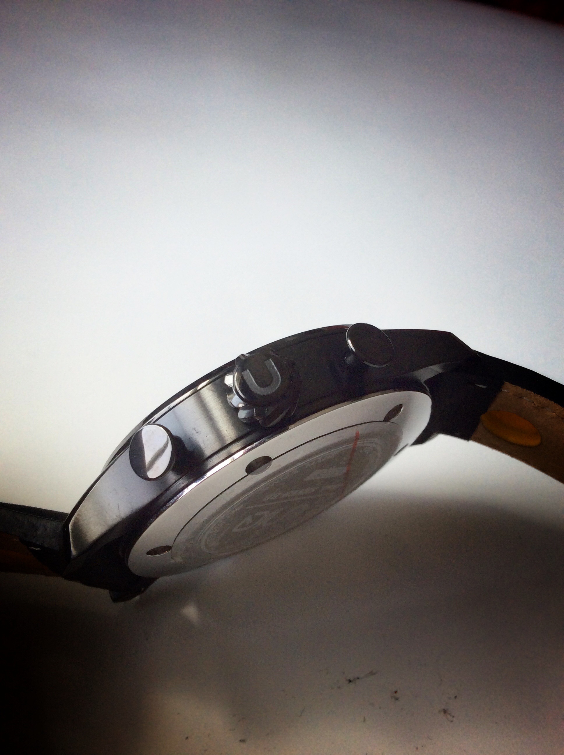 The crown is designed after the tires of the Caterham 7 and has nice tire tread detailing which makes turning and operating the crown very easy to do and grip. The crown is also signed with a ‘U’ for UNIQ which is a nice design detail. I definitely prefer when a crown is signed as it is a simple detail, but a detail that really goes a long way. The pushers for operating the chronograph features are very simple and yet packed with detail, because they remind me of button/pedals that are from a vintage car, which is very consistent with the desgn of the watch.