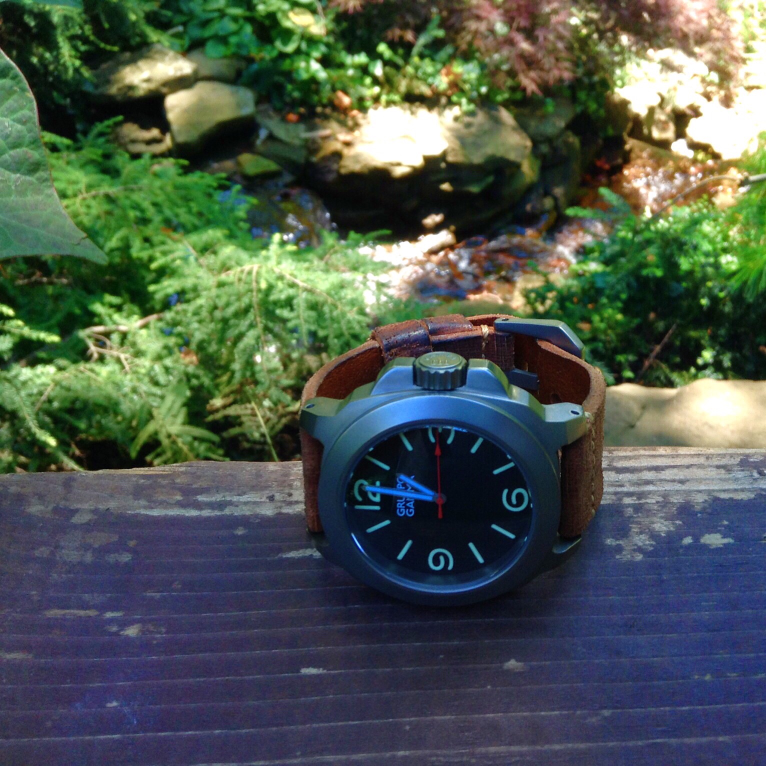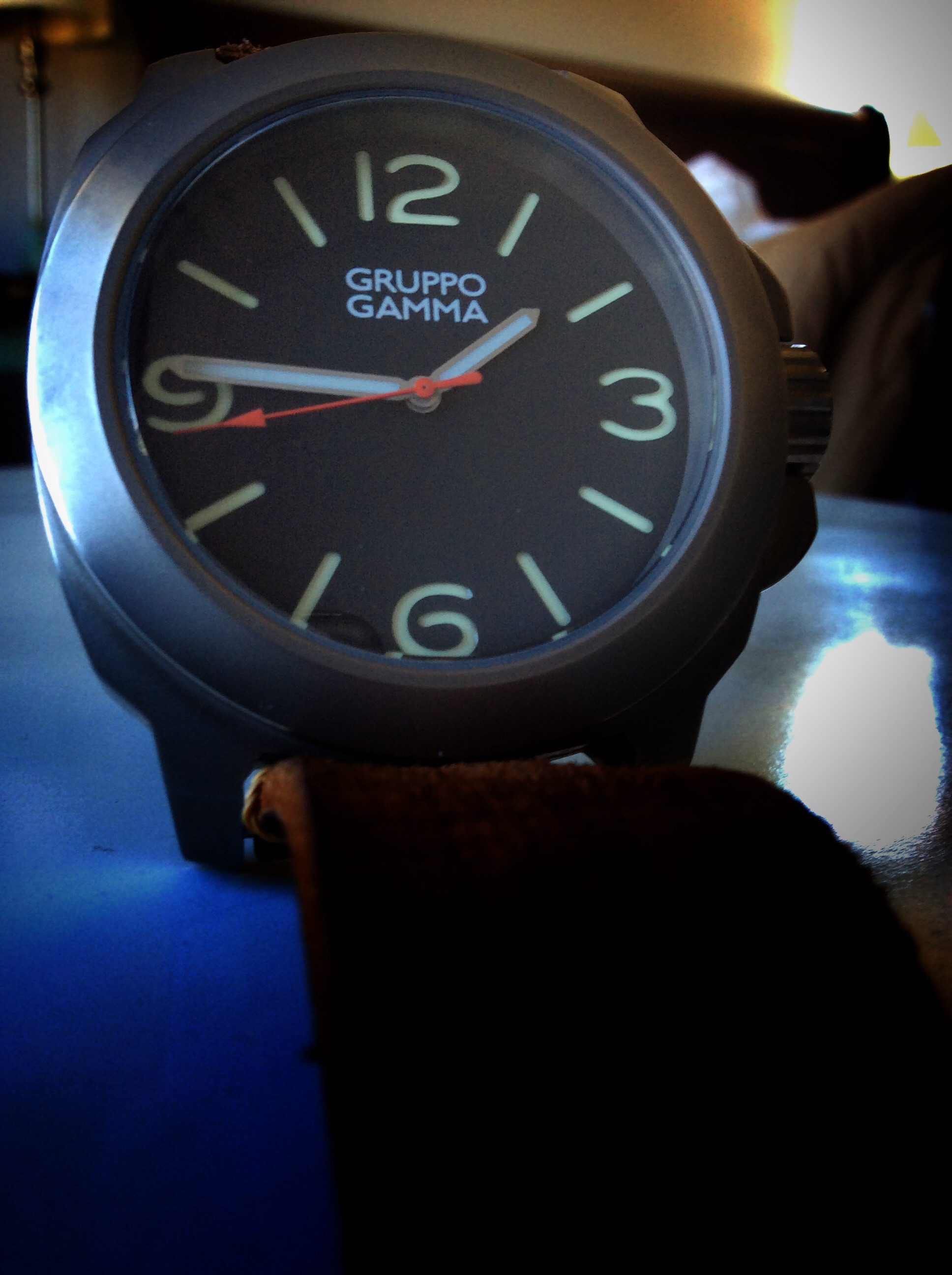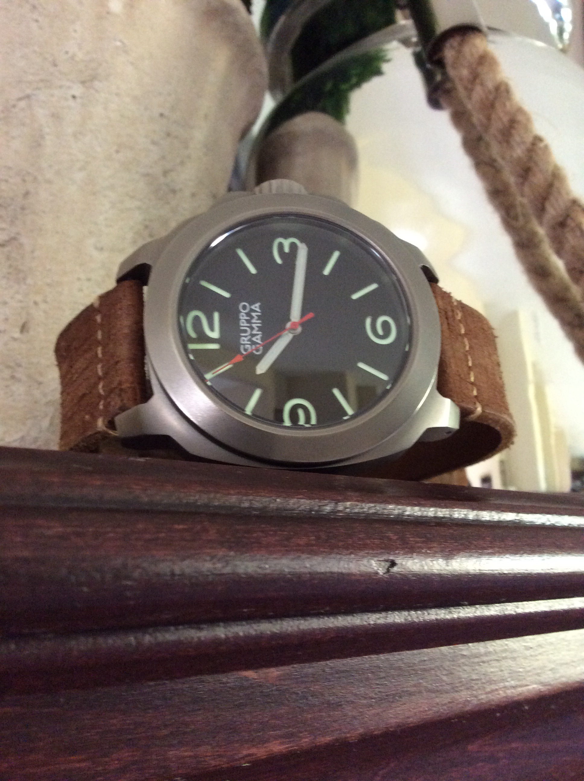 The Vanguard 47mm polished Ti is a very nice offering from GRUPPO GAMMA. I love every detail of this watch. It’s well made from case design, to the beautiful polished titanium , to the leather straps, every detail has been clearly thought out here. There is nothing that I have found on the Vanguard that I can complain about. At $499 you get a lot of watch for you dollar. You get 2 straps, a impact resistant travel case, an automatic movement watch with amazing lume and high polished titanium which in itself is a hard achievement. I am a huge GRUPPO GAMMA fan now as a result of my time with this watch. I would love to see a strap that is stamped with the skull logo on the dial side of the strap and on the strap near the lugs, this would be an awesome detail.