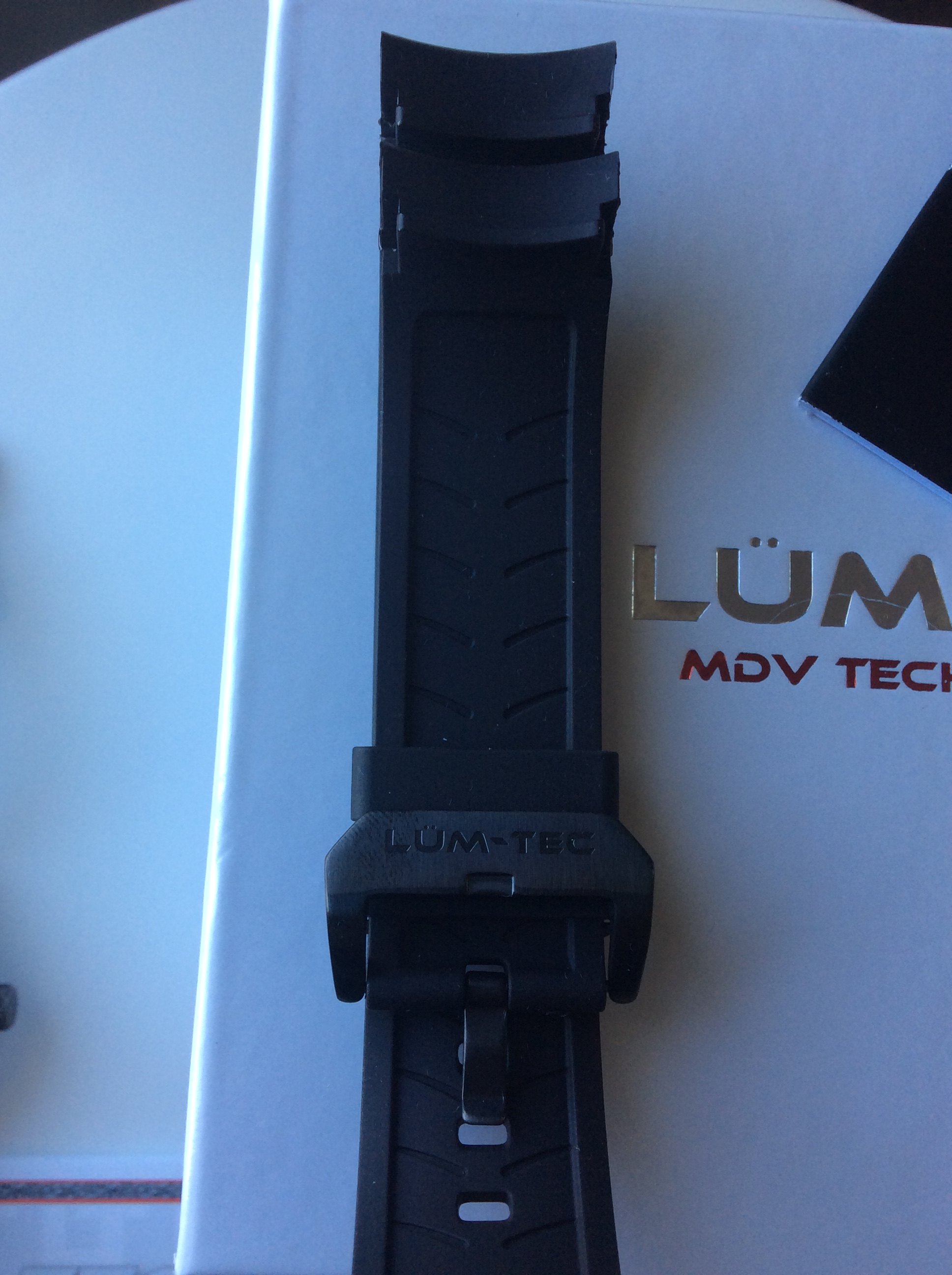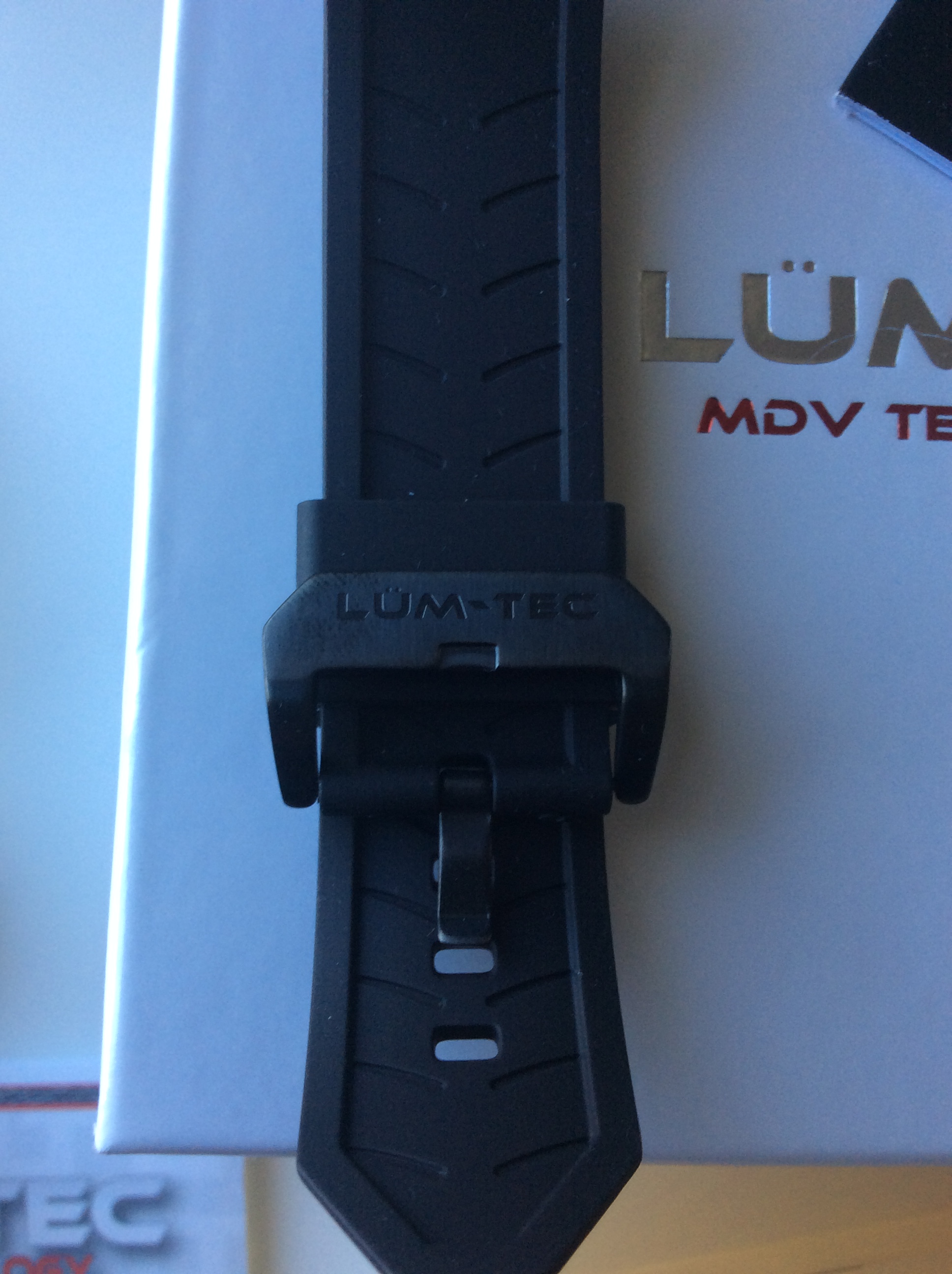 Both of the included straps do not disappoint at all. I am all about custom watch straps, it is almost a sick obsession. But any case I am very critical of the straps companies include with their watches. They are sometimes cheap feeling and fall apart pretty quickly, not very well constructed in the least bit. Lum-Tec doesn’t disappoint. The leather pilots strap with rivets is thick leather with even stitches throughout. The rivets and buckle color match the case color very nicely. Both straps are signed with Lum-Tec as are both the buckles. It’s nice to see that Lum-Tec included 2 buckles with the straps, therefore you don’t have to interchange the buckles at all. The rubber strap is smooth rubber and is also well done, seems to be pretty thick well molded rubber. Both straps are extremely comfortable and very easy to change out. The buckles both work as they should without any difficulty fitting into the holes. The holes are all cut even and are uniform in size throughout with no jagged edges.