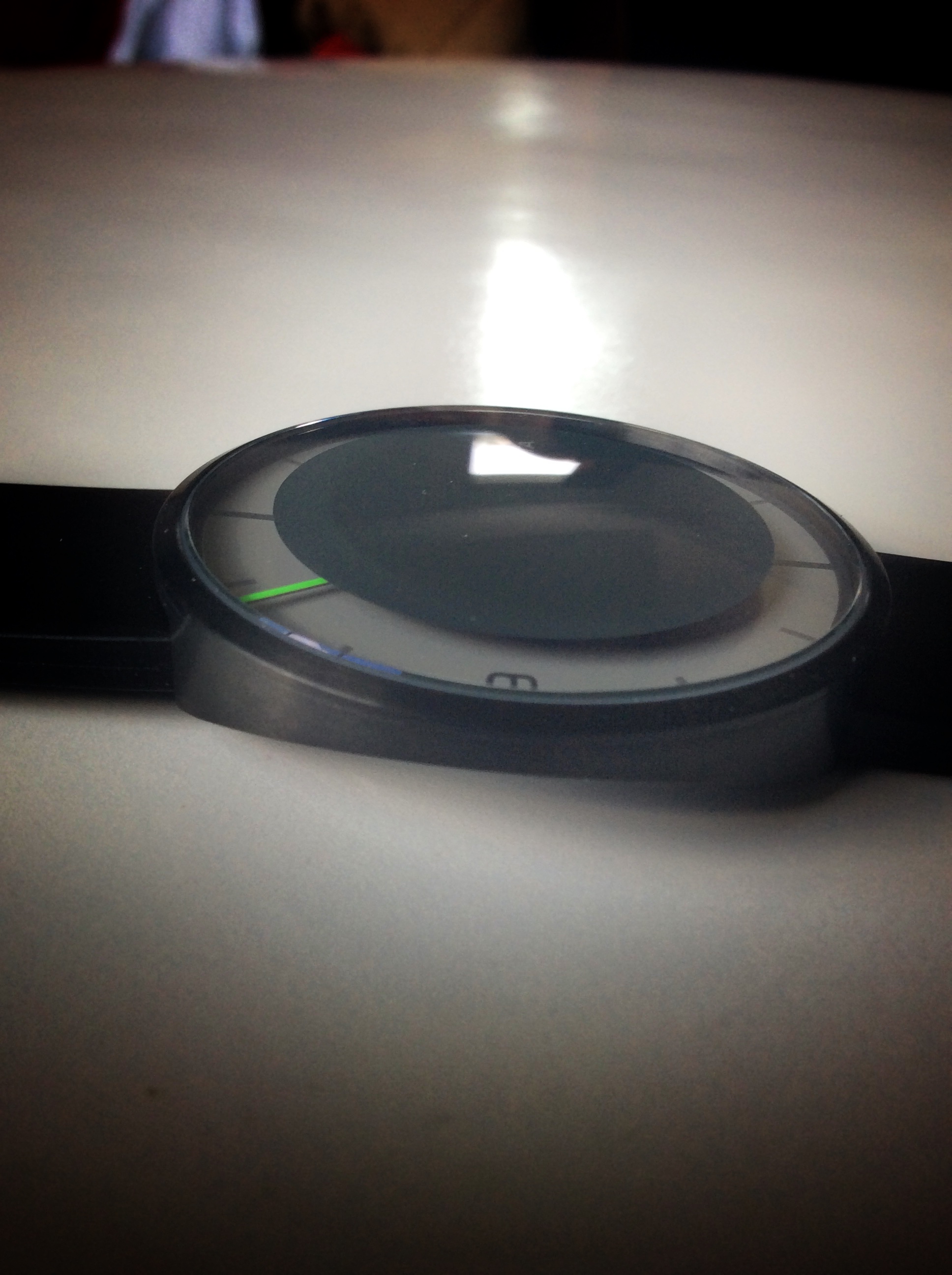 While the hand slowly moves over the dial, it turns one of the 12 segments into a visual representation of the current hour.