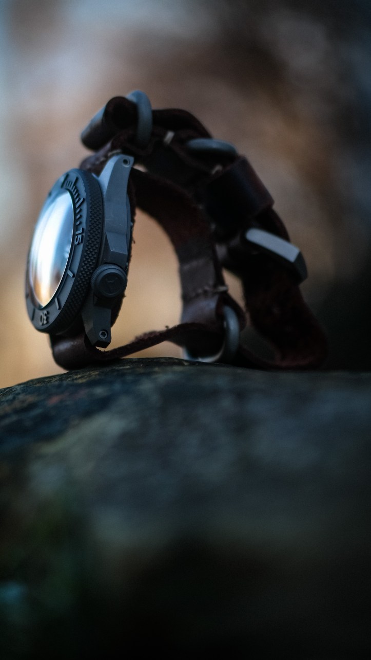 The crown is signed with a raised letter ‘A’. It is a great looking little detail. The screw down style crown operates without flaw. This is probably the sturdiest crown I have experienced, ever. This crown even rivals and in my opinion out classes the crown system on the Rolex submariner and sea dweller. Both watches I had plenty of experience with. The crown tube which the stem goes into is thick and sturdy. The matte ceramic bezel inlay is a real work of beauty. The indices are raised and look phenomenal because of how they are cut and they have a sheen to them which makes them standout against the matte black bezel. The bezel also has the customary lumed pip that is in the center of a raised triangle. The pip is subset into the bezel and is encircled by polished steel. The sub setting of the pip is something that was done with great intentions. I have owned several dive watches where the pip/pearl/faux pearl are raised up from the bezel, and have been easily knocked out/off. Which is extremely disappointing, especially when a watch is defined as a rugged/tool watch built for adventure. Thankfully Andersmann recognized this problem through their attention to quality, precision and function in the field. The bezel nicely rotates anti-clockwise unidirectional  (120 clicks) and has no extra play involved.