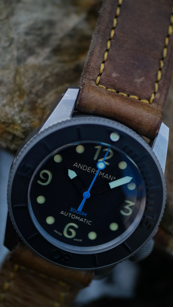 • I’ve been eyeing this watch for ages. Thanks for your write up. It’s great to see pics of this watch outside of the Andersmann website. Andersmann has some great looking watches. Sure does look like a huge chunk of metal on your wrist but I like the chunk. I have a Benarus Megalodon which is all steel but I’m sure this being titanium it wears better.
