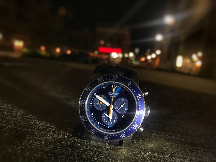 Gavox always gives you great options when it comes to it’s watches and their “shoes”. The GR is no different, as you can see in the pictures that there are some nice leather straps that have stitching that matches the dial brilliantly. Everything functions with great precision and quality on the Gavox Roads. The bezel is so easy to grip and operates with a nice tight feel but not where it’s difficult to rotate. I really appreciate that the crown is a screw down style instead of the push pull style. In my opinion, push pull style crowns should become obsolete. A screw down crown just offers so much more protection from water, dust, etc. Some comments that I have received on this watch from my social media posts are “it’s a beautifully designed watch, just wish it had an automatic movement.” I get the draw of a mechanical movement, believe I do. If the Gavox Roads had a mechanical movement, that had all the features this watch had, it would put it in a completely different price group. Then the comments would become, “I love the design but damn that is expensive.”