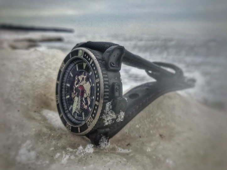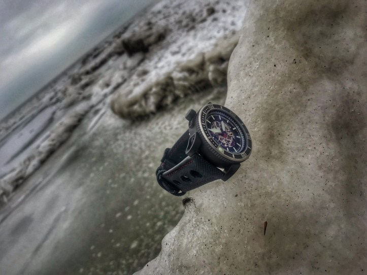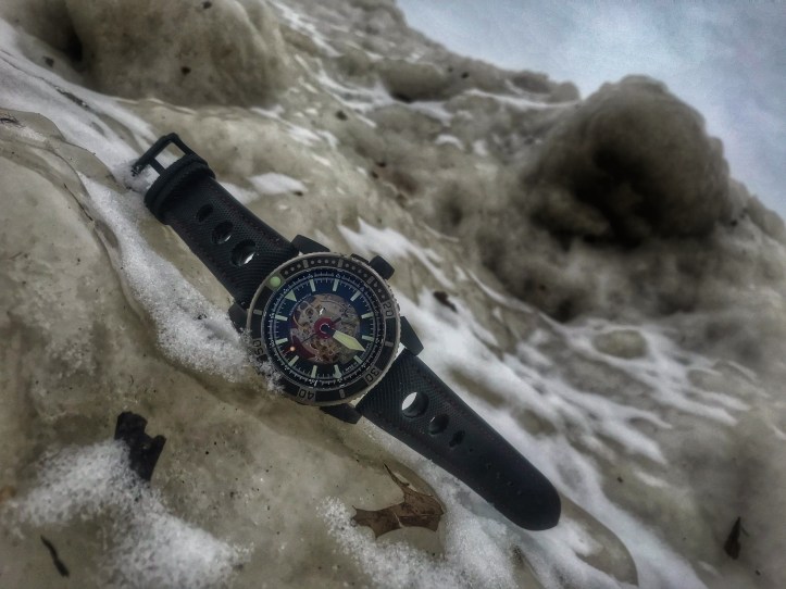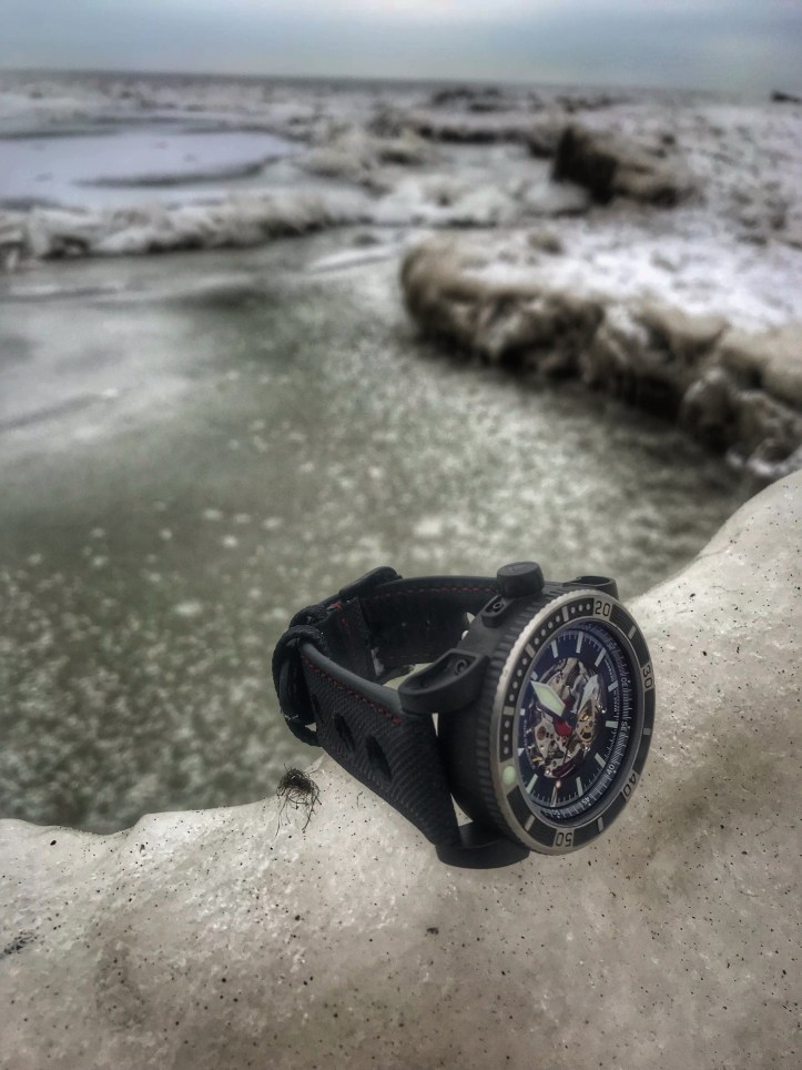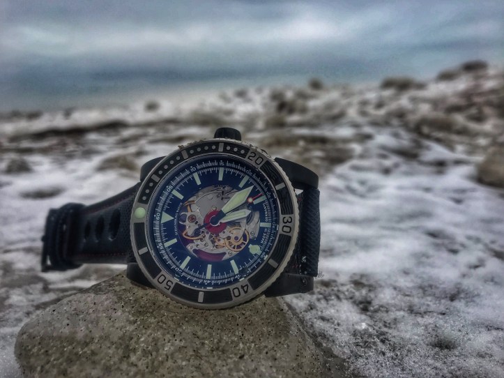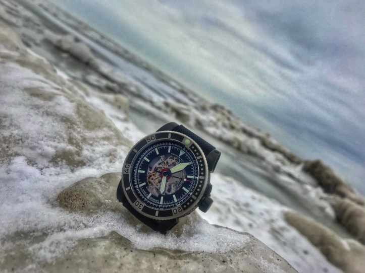 The Viperfish exceeded my expectations of design because I honestly didn’t think that a skeleton dial was going to interest me, especially on a dive watch. I was pleasantly wrong and that’s why I love having an open mind. Open mindfulness allows you to see the world in a beautiful and positive light. The Viperfish bezel is probably my favorite detail on this watch. It functions with smooth fluidity but it also looks killer. I love the textured detailing and I love where the brushed stainless steel meets the black PVD. Absolutely lovely. The SW-20AS movement keeps excellent time in all positions, during all my indoor and all my outdoor activities and it also handled below zero temperatures. It is beautiful and it is badass, just like the Viperfish itself.