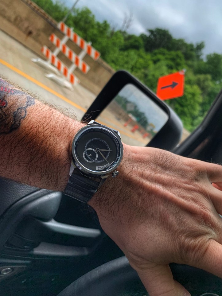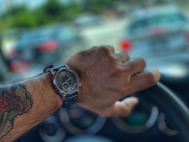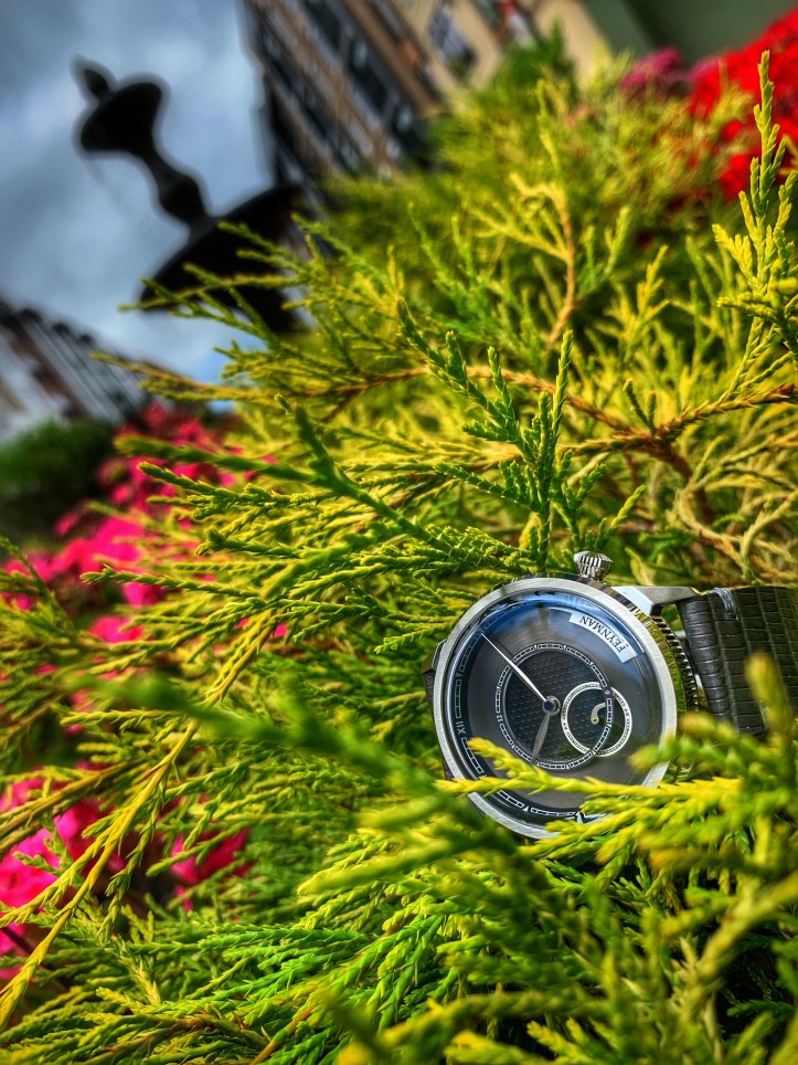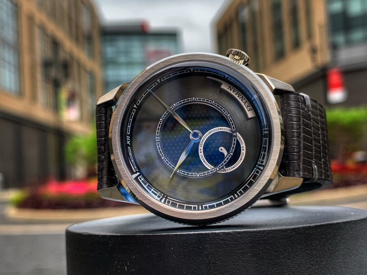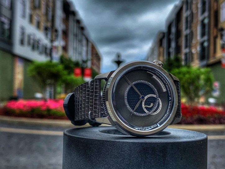 The angles of the solid lugs are just as unique as the other details found throughout the OC. Unique uniformity. The brushed finish on the lugs plays nicely off of the brushed finish on the fixed bezel. Light also plays nicely off of the polished portions of this case. The genuine lizard leather strap allows the OC to wear with all day comfort and the texture/color accents this piece perfectly. The OC is a versatile watch because it can easily transition from work to play. I definitely recommend this piece to anyone who is looking for a break from the monotony of watch clones that are over saturating the industry right now. The quality of this piece is fantastic and Feynman’s attention to detail is apparent throughout this watch.