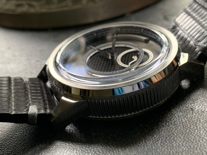 With the Feynman One, we were able to achieve our idealised vision of a modern dress watch, with a multi-layered dial design, unconventional case, and a venerable Swiss movement.