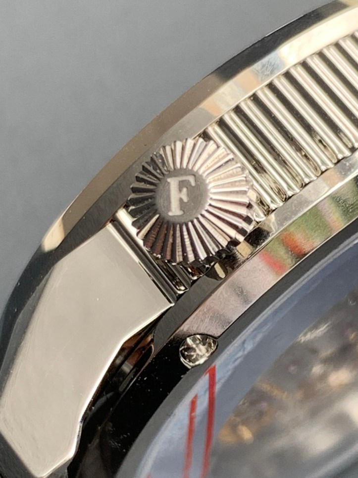 The highly decorated details of the mechanical ETA “Peseux” 7001 movement can be viewed via the OC’s exhibition case back. Mechanical movements will always have a soft spot in my heart because they remind me of my grandfather’s pocket watch. The case back isn’t the only detail on the OC case that is worth mentioning. The uniformity between the case side and the signed crown are some details that are definitely worth mentioning because they certainly are attention grabbers. The lines of both the diamond shaped crown and sides of the case are quite beautiful especially when the light catches them perfectly.
