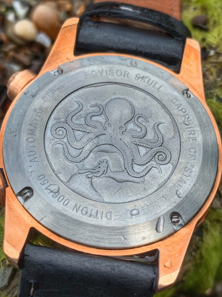 I absolutely love and appreciate the case back on the Ascent and you can see what I am talking about in the picture below. I am so glad that Advisor went this route and not with a sapphire crystal case back. A solid, engraved case back is much more interesting in my opinion.