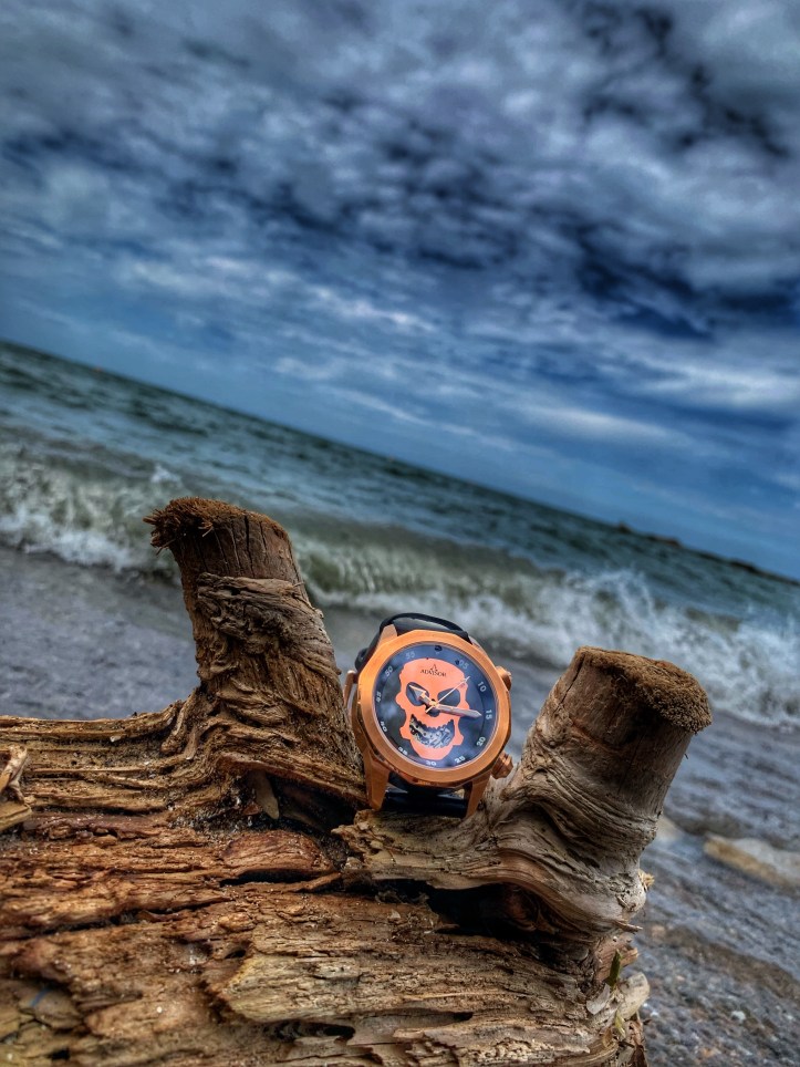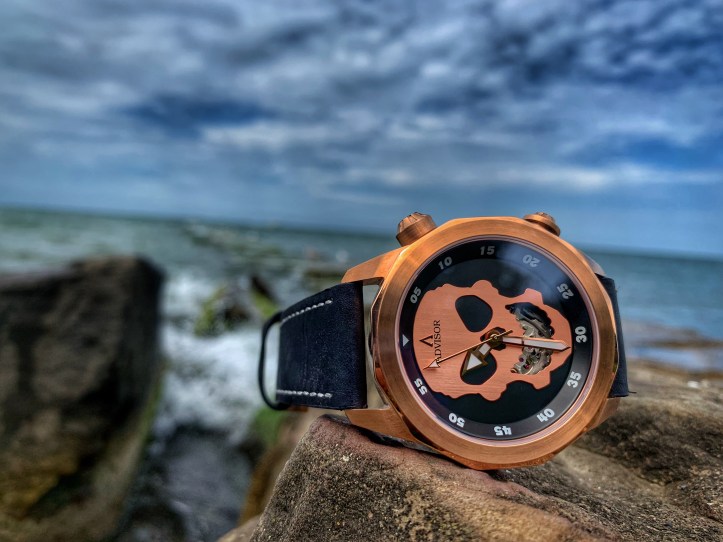 On my journey to healing, I have found a lot of help thanks to meditation, exercise, self reflection and Buddhism. All of these have been an extremely helpful formula for me personally. There are days when I still struggle with PTSD, anxiety and panic attacks, but thankfully these things no longer control me. I wear a Tibetan skull prayer mala bracelet every day as a physical reminder to help keep myself centered. In Buddhism, the skull represents emptiness, which is regarded as a quality of this world. This usually means that has no character by itself. It is essentially saying all occasions are impartial – but we opt to magnify them. This is partially the reason why I was interested in seeing Advisors new Ascent watch, with this particular dial.