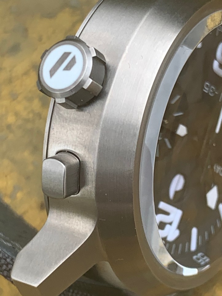 The watch wears extremely comfortably on the wrist thanks to the lightness of titanium and because of the case size itself. The F-X5 is an excellent example of where size doesn’t matter. I personally prefer that 45mm-47mm case size but when a watch is extremely well designed I don’t pay attention to the size of a case. It becomes about the watch itself and it’s design details coming together in consistent harmony! This watch is exactly that, a watch that makes you forget what case size you prefer and what style of watch you prefer. Hell of a deal especially if you get in on the $329 super early bird.