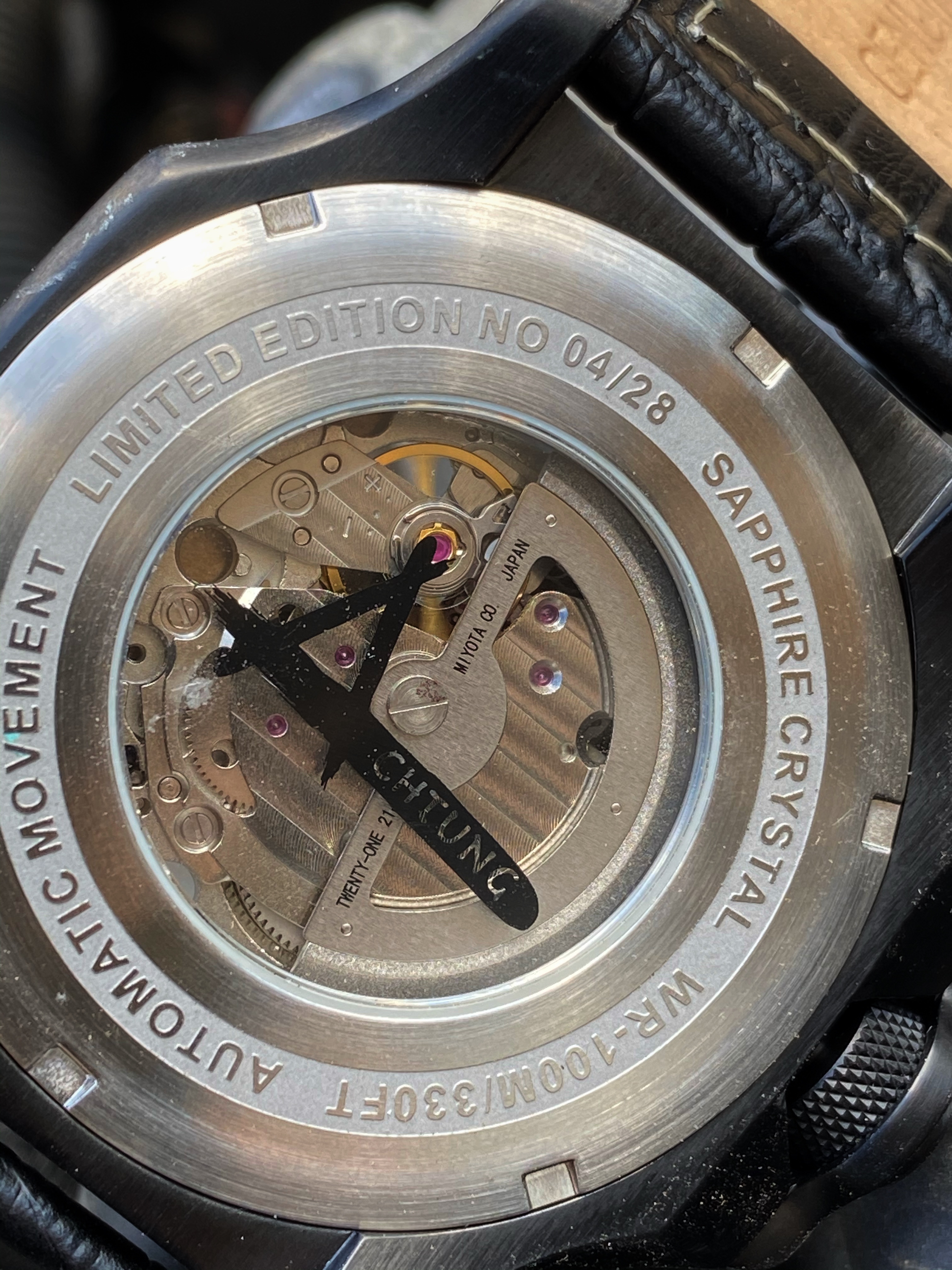 The Turbo3 comes is at just under $600. What do you get for your $590? You get a unique, limited edition watch, a large 316L stainless steel case with 330ft WR, Miyota movement, and art style post apocalyptic design/Akira meets Mad Max. The smooth black case is finished with nice detail teamed with a matte black dial protected by a sapphire crystal. The dial is my favorite part of this watch. Chaotic beauty is what I refer to it as. It’s full of detail, depth and definitely has it’s own unique personality. If you are a fan of cars, post apocalyptic movies and unique designs, then this is a great option for you to consider.