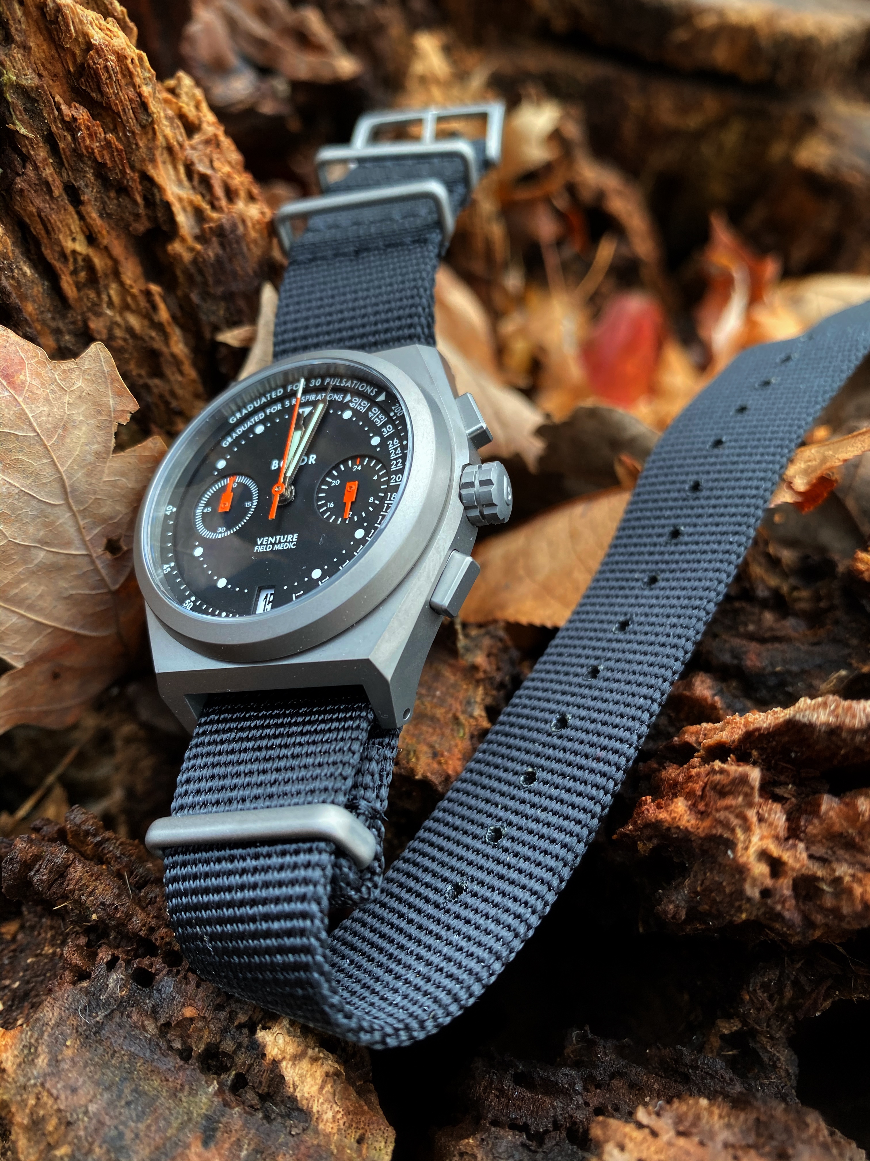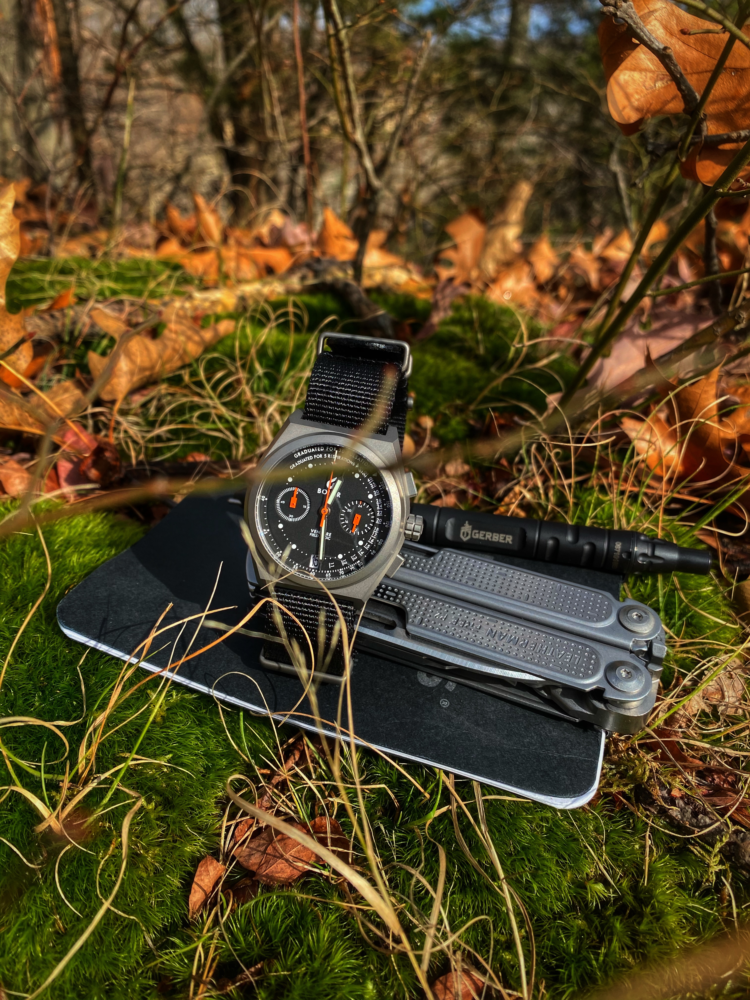 Purpose driven gear is something that always accompanies me whenever I am on an outdoor adventure. My gear always includes a knife, small hand saw, flint, water, flashlight, screwdriver, small notebook, pen, compass and a few other key items that may or may not be used. I always like to be over prepared than not but all the gear I carry is purpose driven. One of the most important pieces that I carry is a watch. Timing is absolutely everything in my opinion. This time of the year it is extremely important when relying on the remaining daylight when the hours of light per day is shortened dramatically. I rely on time even more so when I am on an unfamiliar trail, when there is only one way in and out. I’ve been relying on the Boldr Field Medic for my timing needs on my hikes this month.