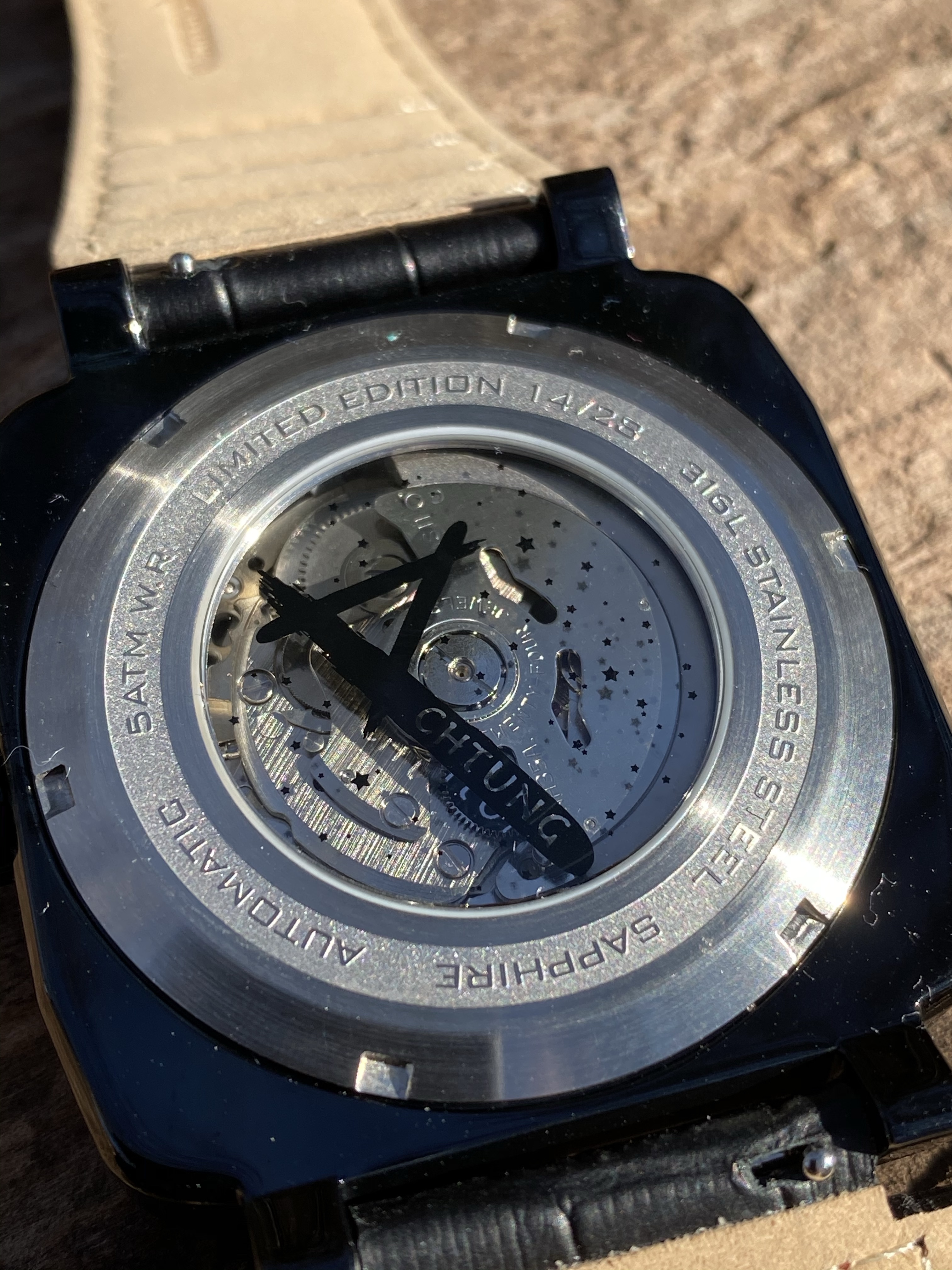 The Galaxy is priced at $530 USD. Who is the Galaxy watch intended for? I would recommend this watch to someone who is a sci-fi fan or space enthusiast. It’s limited to just 28 pieces in each case/color variation. If fun, limited edition watches are your thing then the Galaxy might be an excellent option for you. Mechanically speaking, the Galaxy functions as it should without any issues whatsoever. The only suggestions I have to make this watch better is one, rid the dial of the date window. This dial is uniquely cool in my opinion, the disruption of the flow for a date window is blasphemy! The dial would be more aesthetically appealing without a date window. I also would have liked to see the stars on the case back to be lumed or the crown. Just some of my suggestions to improve upon what is already a unique watch. My suggestions are only to take the Galaxy to the next level of design. These suggestions all come from an opinion based origin. Obviously the design isn’t for everyone and I get that, but if you are that person who is interested in a different kind of time telling experience, the Galaxy is definitely a watch to consider.