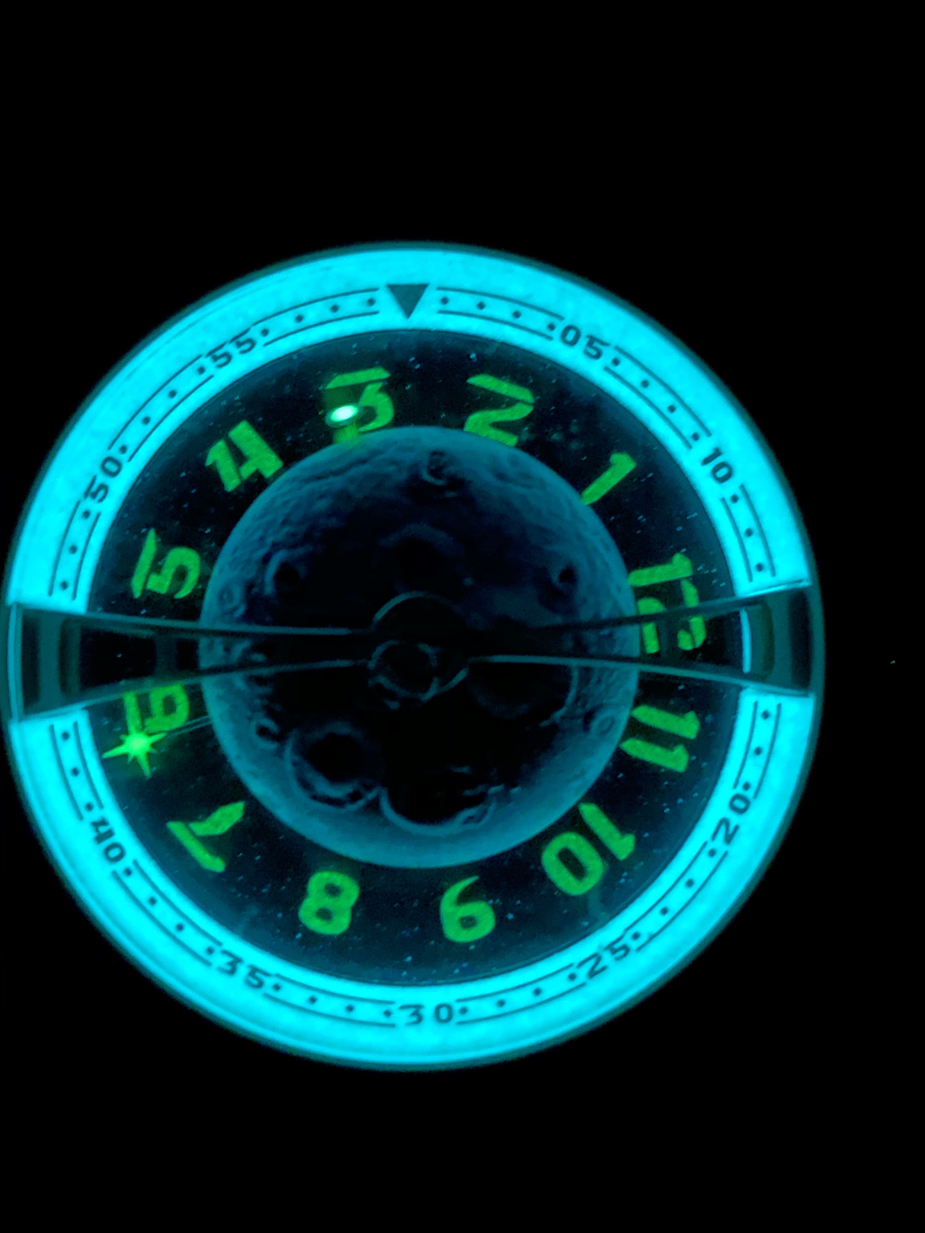 In the ever growing sea of Rolex homages, it’s refreshing to see an avant-garde piece coming out. The Kaal multiverse is a truly unique watch with an equally unique way of displaying the time. You have your choice of dials with either Artemis(moon), Sol(sun), or Gaea(Earth). Once you have picked out which dial you like, now it’s time to figure out deciphering the display layout. Before we get into playing Ralphy with our little orphan Annie decoder ring to decipher the dial display, I want to start at the base of this dial.