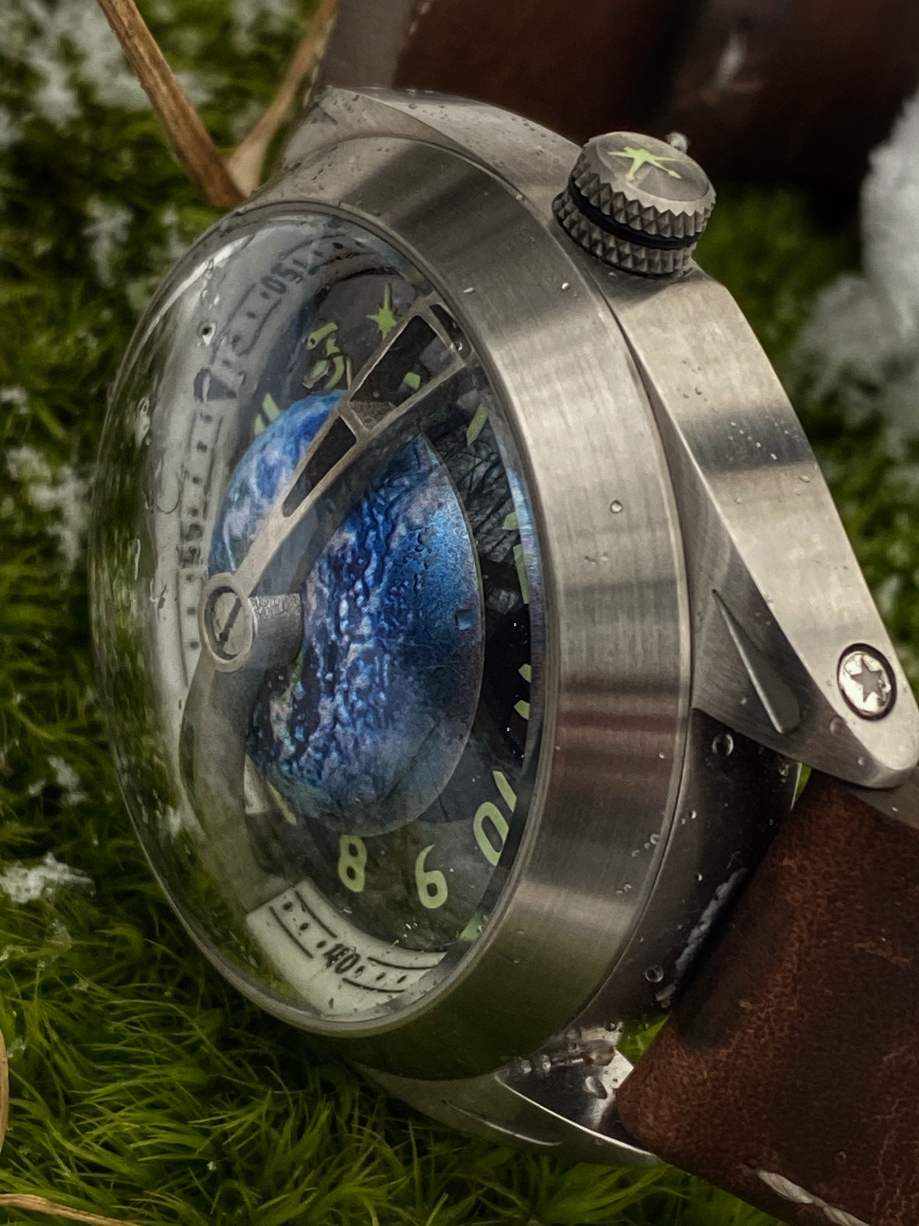 It is exactly that, the 3D detail of this dial that intrigued me the most when I first gazed upon the Multiverse watch. The details on each version is meticulously done with such precision that it is the true “star” of the dial itself. From the craters on the moon version or the oceans on the earth version, the intricate detailing is quite mesmerizing. The coloring on the sun and the moon are being changed a bit from what you see here in these pictures to what they will be on the production pieces. As for the color on the moon it will be shifting from the bluish color to a more grayish color and the sun from a red color to a more orange color. These color changes will give both versions a more accurate depiction of both celestial objects. These changes will be taking already great design into a more fine tuned direction that will appease both watch enthusiasts and astronomy lovers alike.