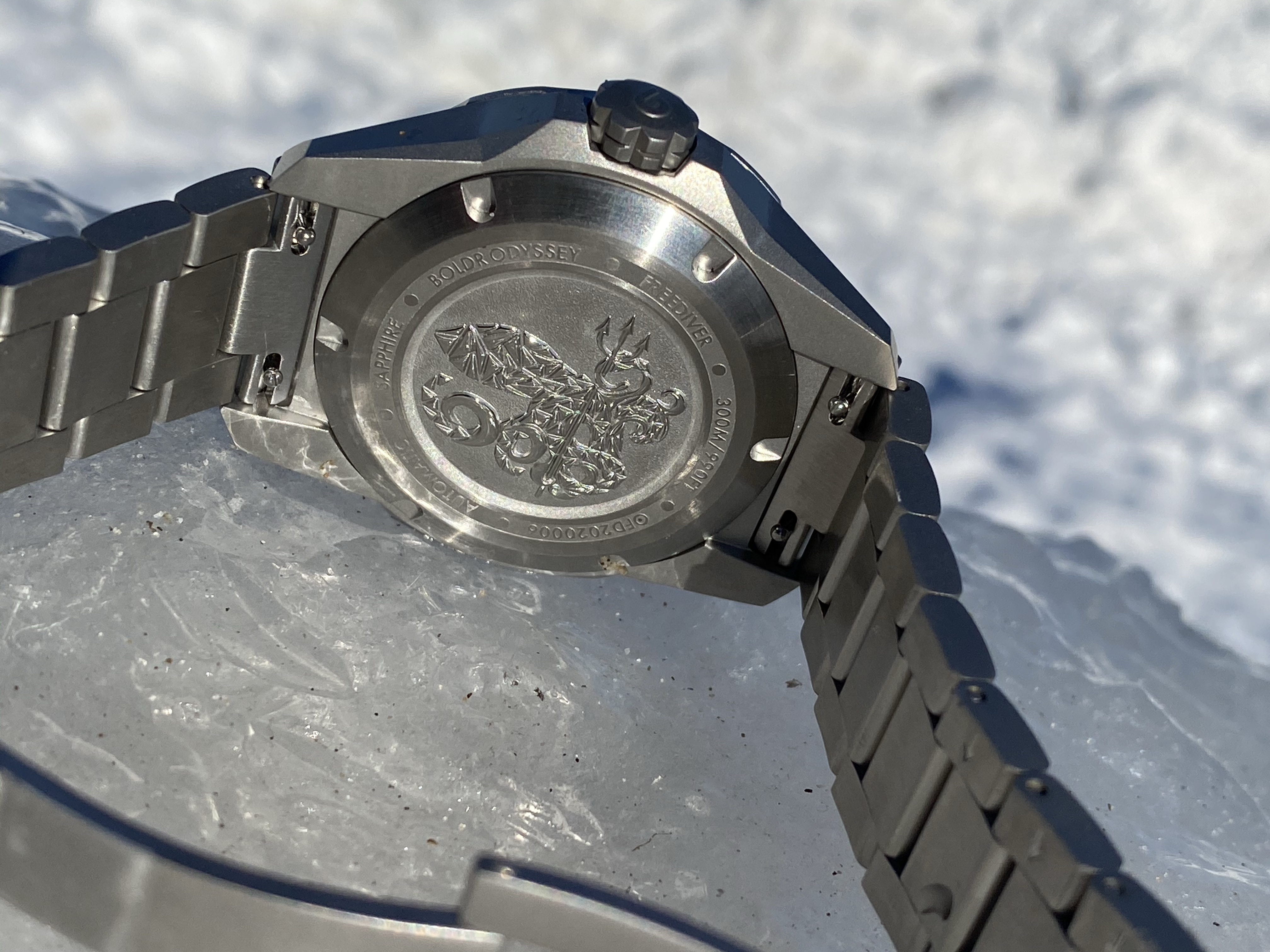 BOLDR growth is apparent with each release that I have experienced. The team at BOLDR is dialed in and extremely focused. The Freediver is an extremely well executed watch in terms of design and quality that translates into use in the field. In my opinion that is most important. How a watch handles itself when it is relied upon and how it holds up during that “hour of need” is what separates a successful release from a failed release. I’m not talking financial success, as I have before a watch can be a great seller but fail when it comes to functional quality. A successful watch is measured in quality, design and function, this is why I consider the Freediver to be a success. The Freediver is available on BOLDR’s website https://www.boldrsupply.co/collections/odyssey-freediver for $649 usd. You get a lot of watch for your money. More importantly you get a quality driven watch for your money. Every thing on the Freediver functions as it should whenever and wherever you need it to. During my review, the Freediver functioned perfectly in below zero temperatures, in snow and ice, hiking through the woods (and to grandmother’s house) and in my work environment. The Freediver was dropped several times on solid ice, down the side of a rock filled cliff, into mud and it didn’t miss a beat. I was surprised how well the case held up, no scratches and no dents.