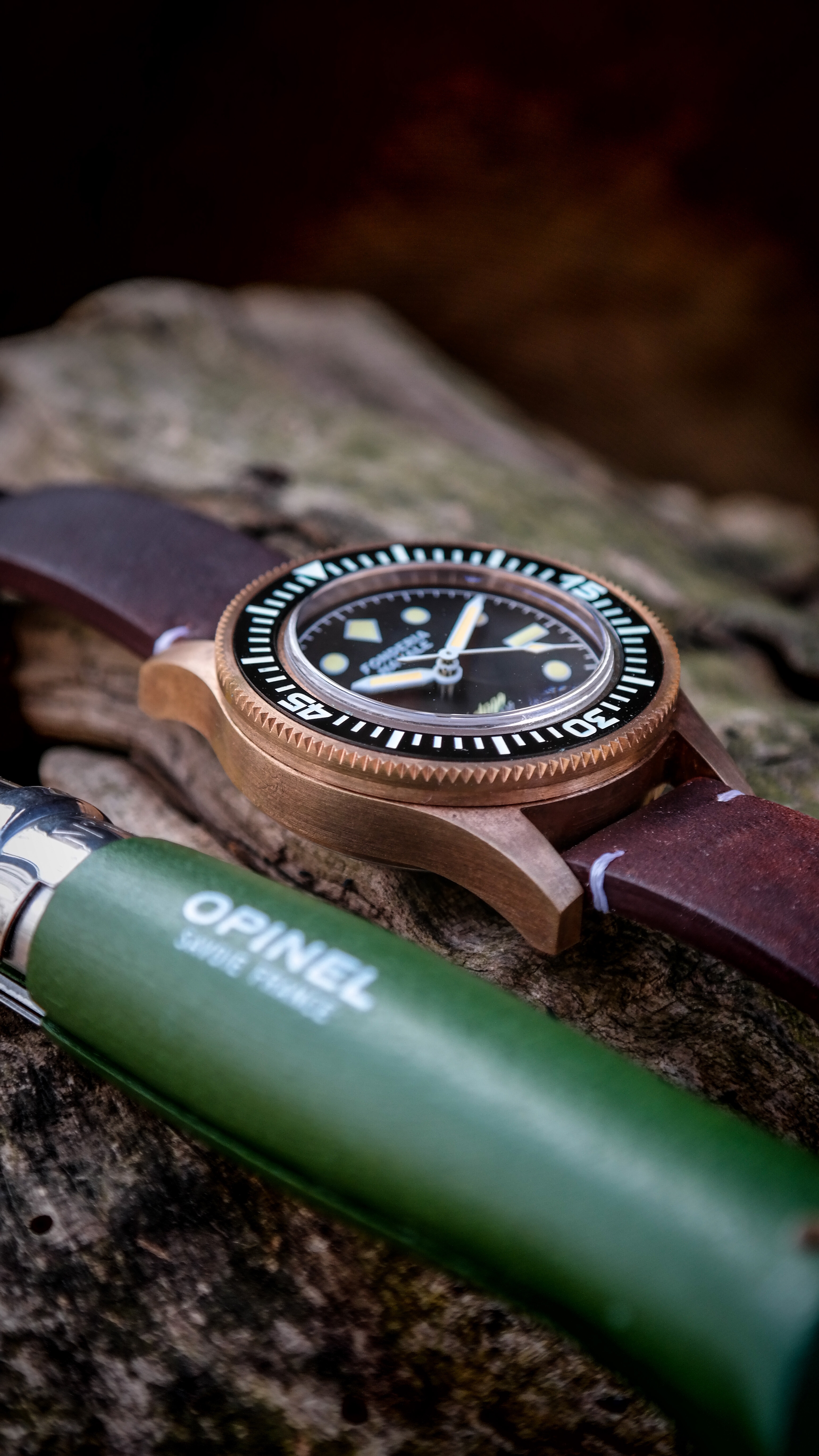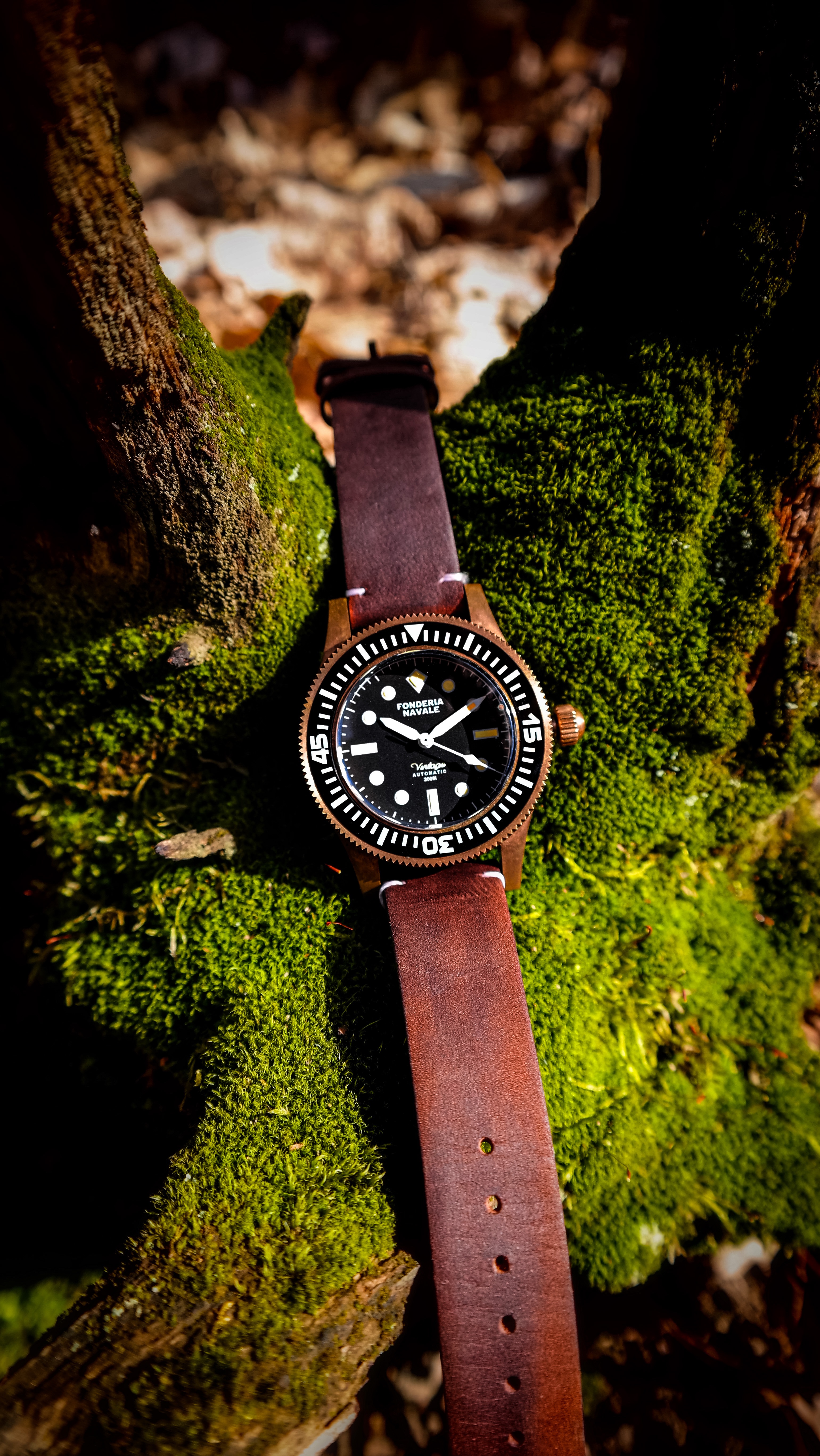 The Vintage is an extremely affordable piece that is packed full of details that are a welcome “surprise for the price.” I will go as far to say that I can’t think of another watch that has this many nice details for the price. There’s a misconception that in order to be a “good” watch that it has to carry a certain price which is absolutely absurd. Quality shouldn’t be affected by the asking price. My greediness would recommend having drilled lugs Vs the quick release spring bars but that’s just me being selfish. The details teamed with the flawless operation of the details, makes the Vintage a no brainer for anyone looking for a bronze diver. I can’t recommend this watch enough without sounding like a complete fanboy. The Vintage is one of those watches that come along and catch you completely off guard. It’s a departure in a way from the Fonderia Navale DNA that I have come to love, but the execution of details on this watch are surprising. Surprising enough to make me enjoy this watch as much as I enjoy their past releases. I am enjoying watching the progression of Fonderia Navale/PONTVS.