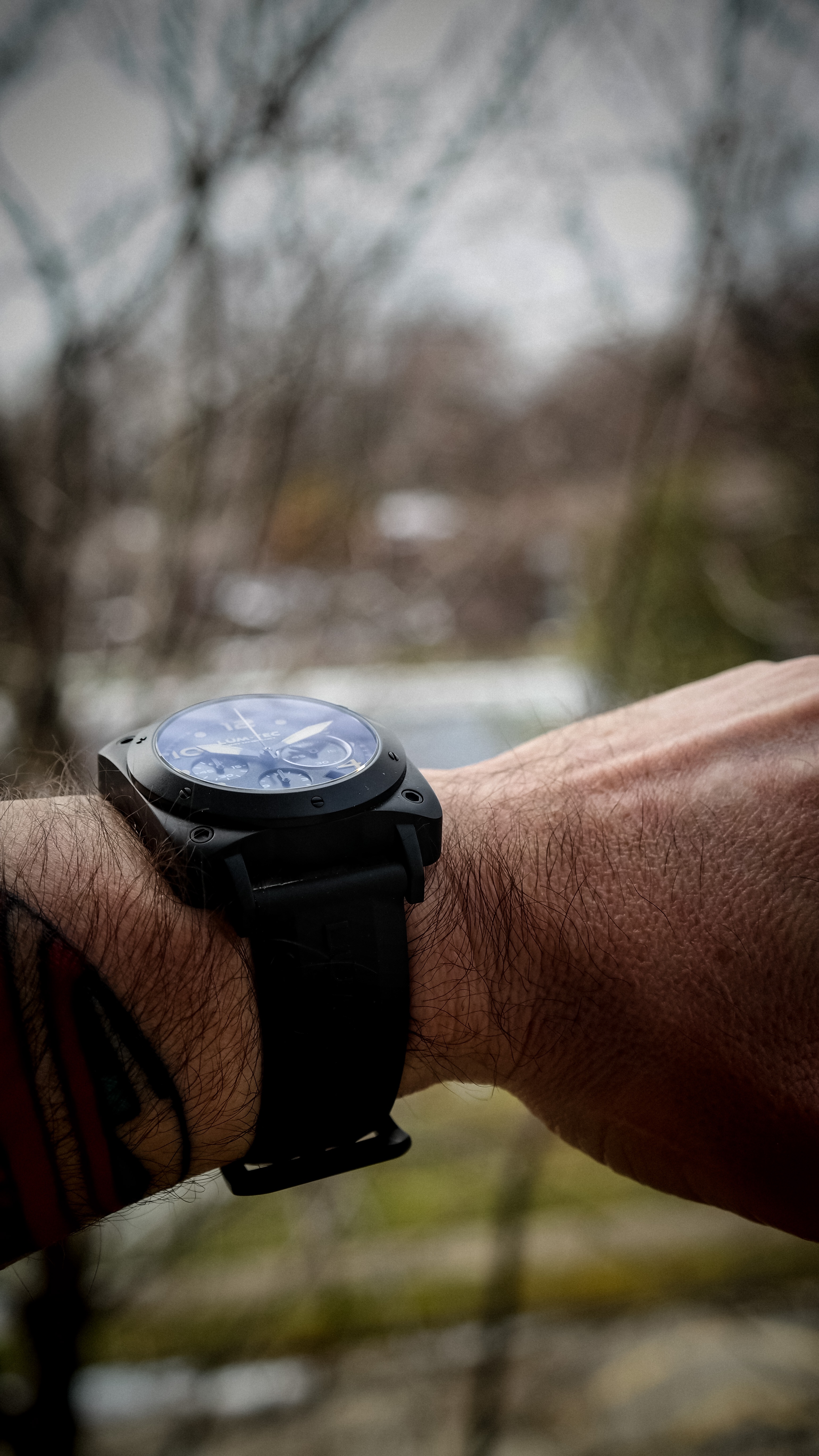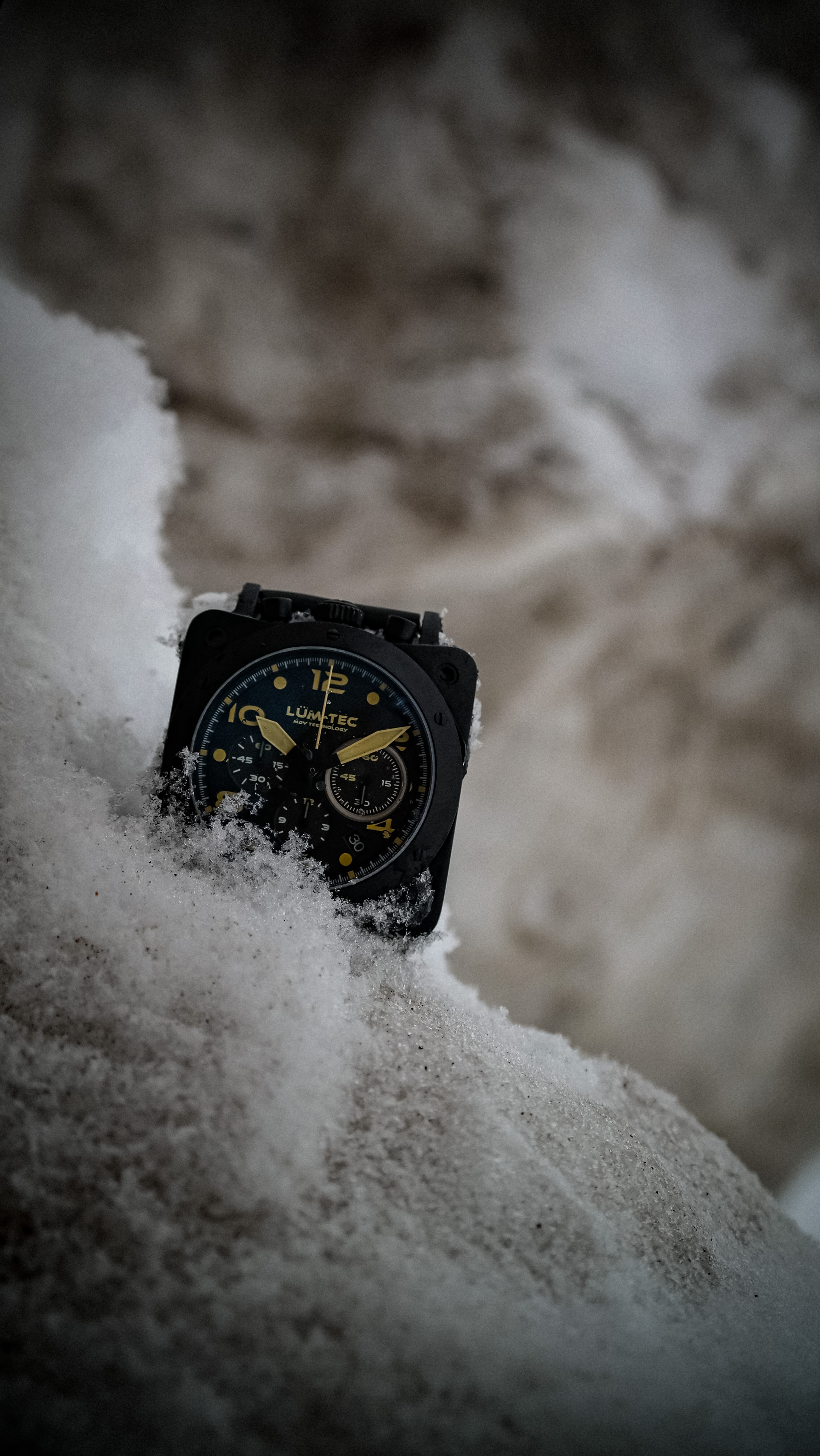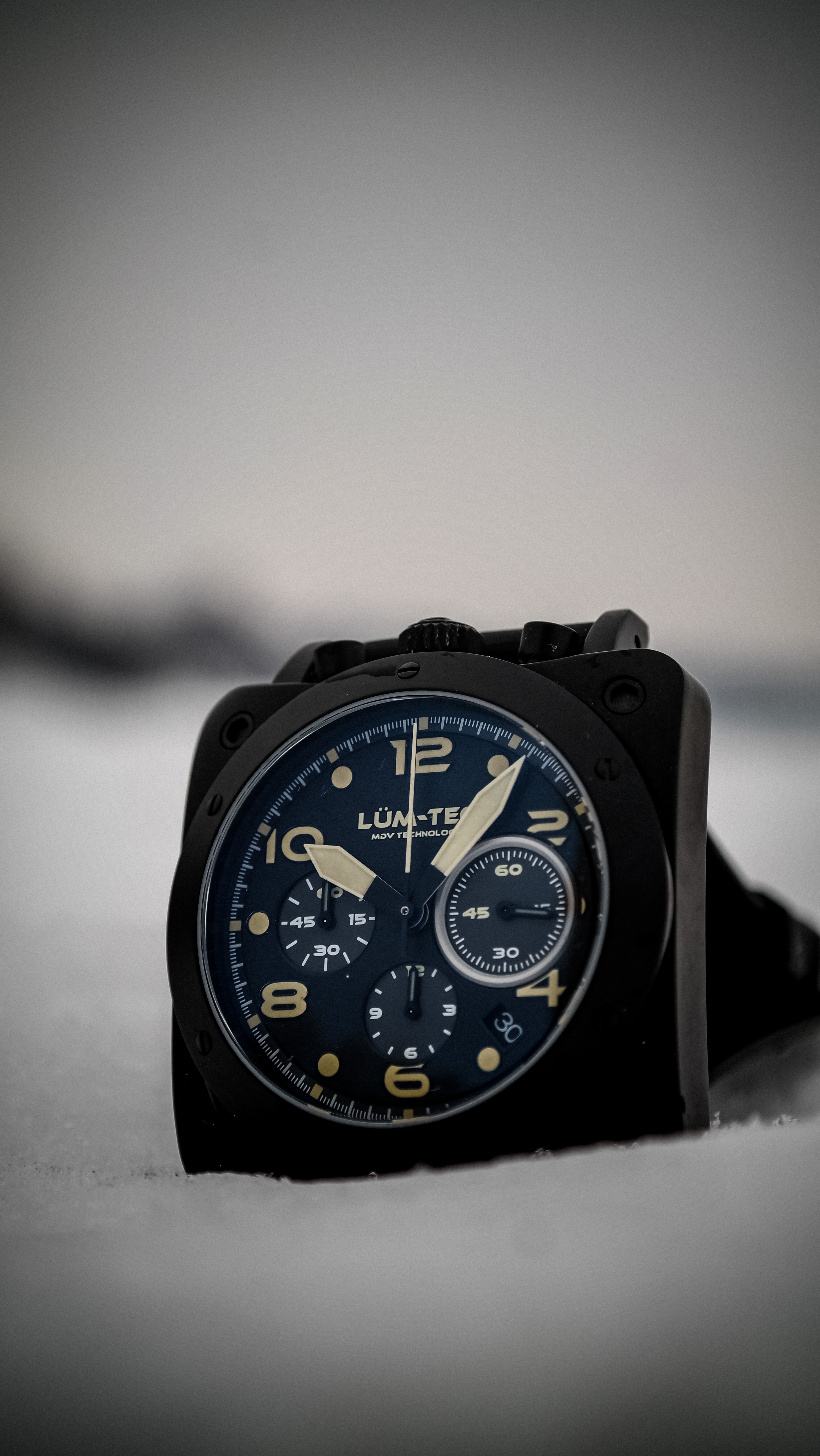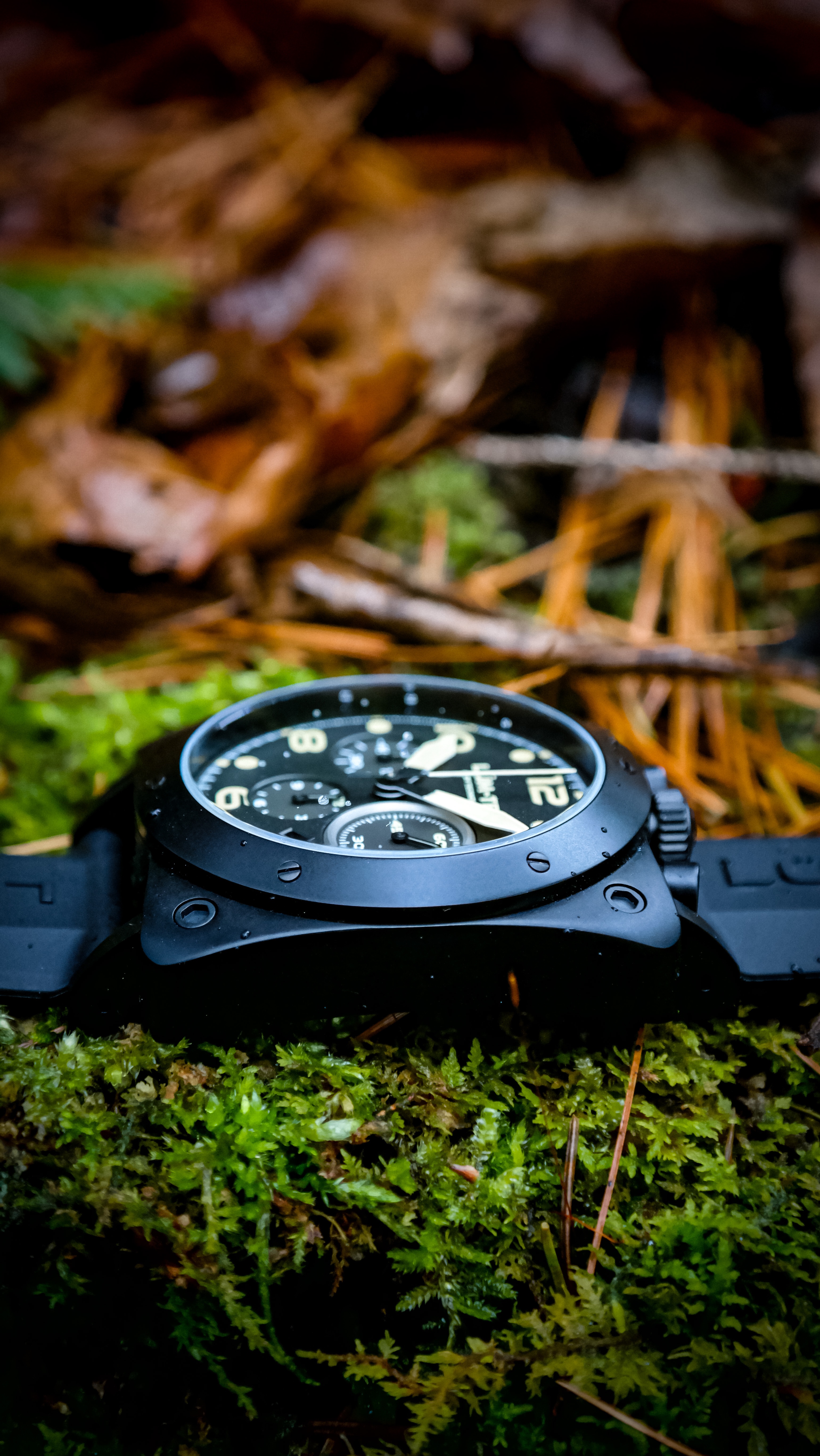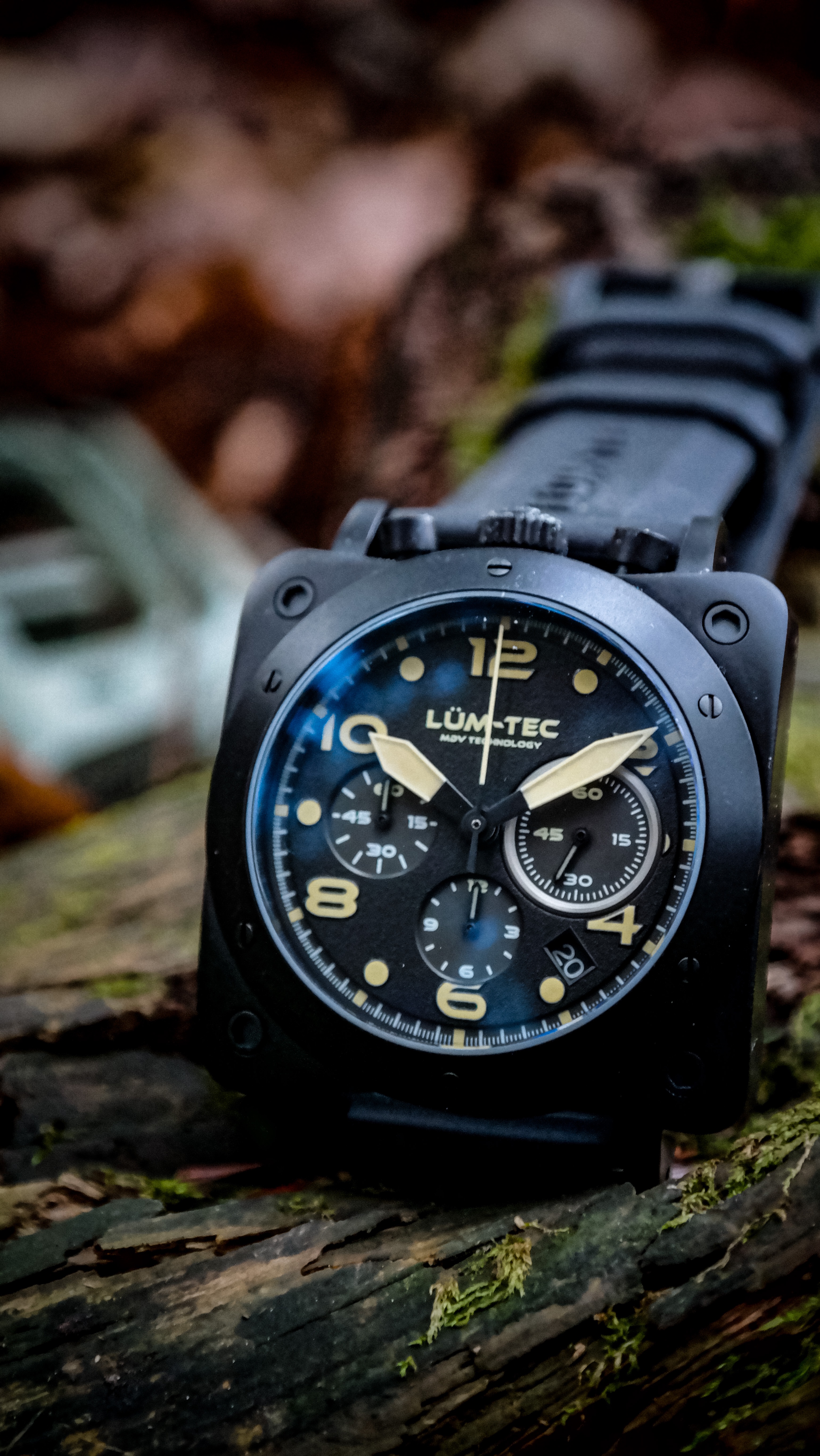 Finishing off the Bull42 case is the military grade double anti-reflective coated sapphire crystal and the solid screw down case back. The Bull42 reminds me of that pocket knife I grab to take with me when I go hiking. It’s not my “best” knife or my sharpest knife or most expensive knife, but it’s a knife I know can handle whatever I may need it for while hiking…….even if I just use it to widdle a stick for some mindless relaxing fidgeting. How does this relate to the Bull42? In my opinion the Bull42 is a watch I would just grab, strap on my wrist knowing it will handle whatever adventures I may come across on my time in nature. Whether I time laps on a jog or I hit my wrist against rocks while climbing a cliff side or accidentally bury my wrist in mud….. I know the Bull42 can handle any of it and it does it well without being my most expensive or “best” watch. The Bull42 doesn’t pretend to be something that it’s not. Lum-Tec designed an easy to grab watch, that is legible and features some accessible & reliable functions (12 hour chrono sub-dial, 60min chrono sub dial, sweeping 1/5 chrono seconds hand, & a continuous seconds hand) This particular Bull42 model is available on Lum-Tec’s website for $555 USD. There are other variations available as well. https://lum-tec.com/collections/bull42-series