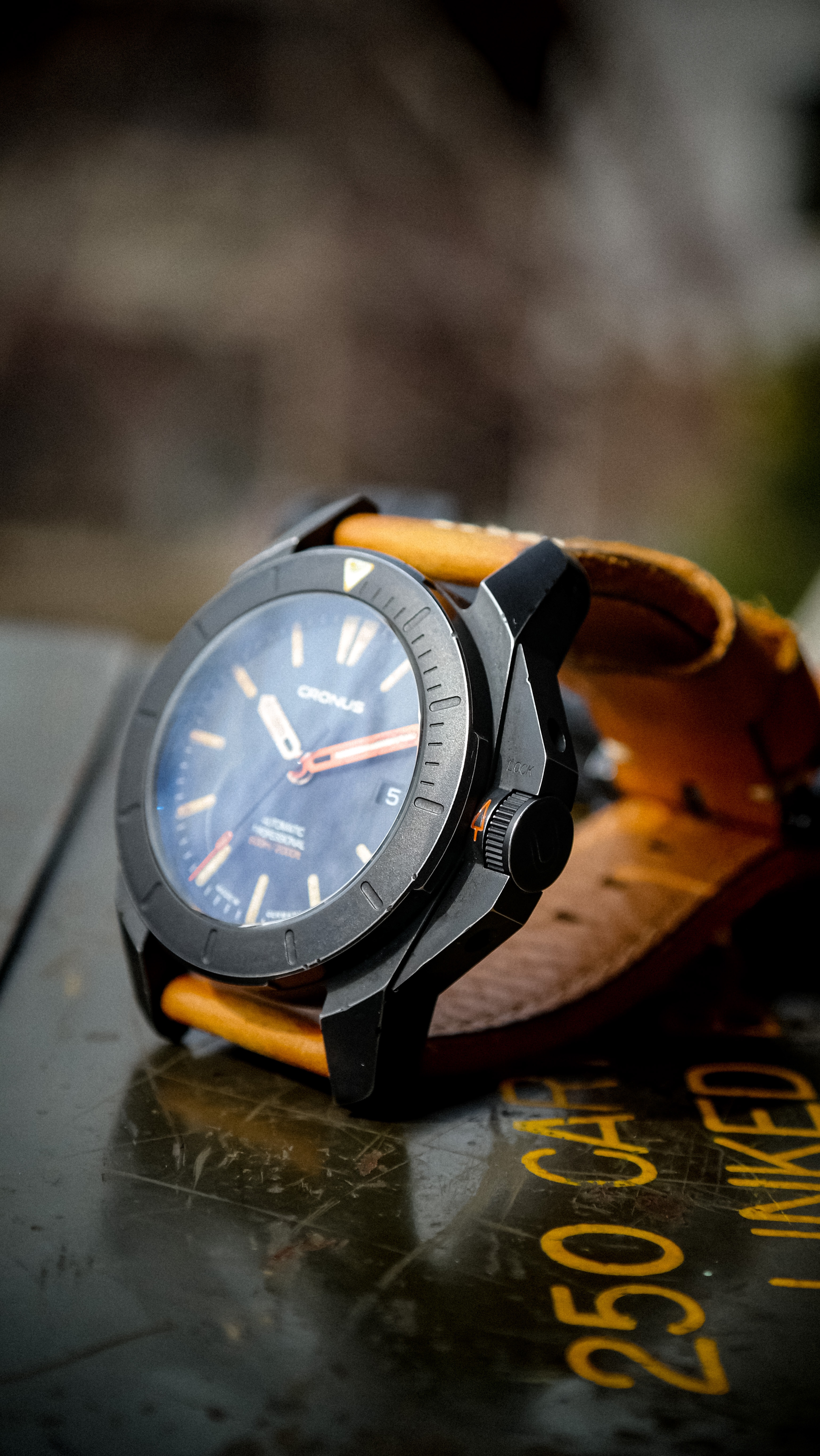German engineering. If I had to describe this watch as simply as possible, German engineering once again sums this piece up perfectly. The meticulous design detail is apparent throughout this watch. I have to say that the detail that has gone into the aging and distressing is quite impressive. Juri Schob is the man responsible for the German based brand Cronus. During the years of 2001 through 2005 Juri studied in Berlin and received his diploma in product design. He has been quite busy since 2000 as a designer and design engineer in agencies and large companies. In 2006 Juri began to work with the restauration of watches which led him into development and design of watches which was on behalf of external watch manufacturer. In 2011, Juri has been developing and implementing his own model series that led him to registering Cronus in 2015. Today we are looking at the P3 version which is the battle damaged stealth model.