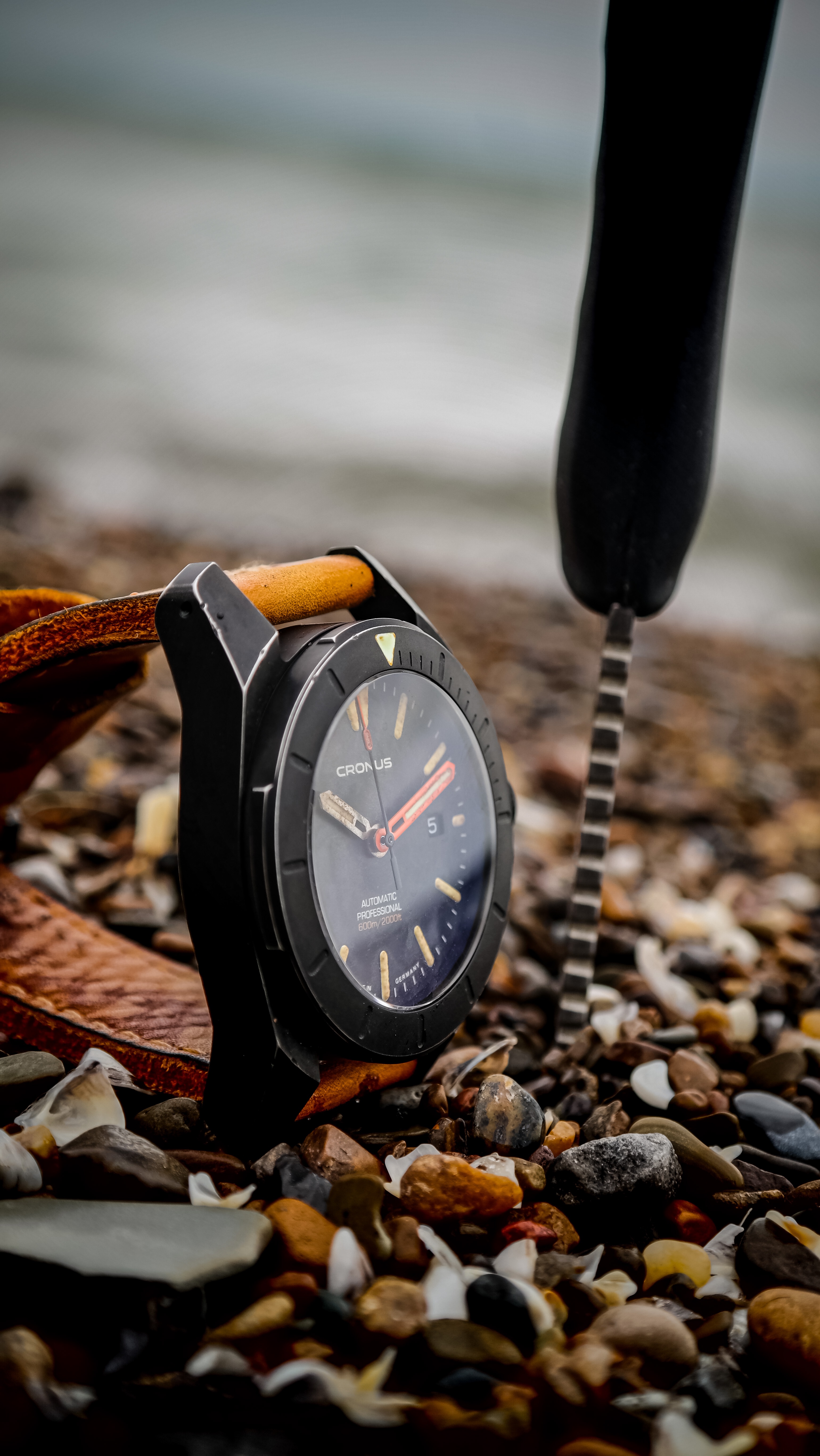 The first manual sketches and technical drawings of the diving watch Cronus were developed in 2010 by the Russian deployment watch 191 CHS from the 1960s. The aim was to maintain the characteristics of the axial rotation of the crown as a central control element and to stabilize the crown closure as it protrudes quite far. The requirement was from the outset: a very robust watch, which can withstand extreme loads and external influences and ensures water tightness. This idea was implemented technically in 3D-construction. In the following year, the prototype 1 was finally developed.