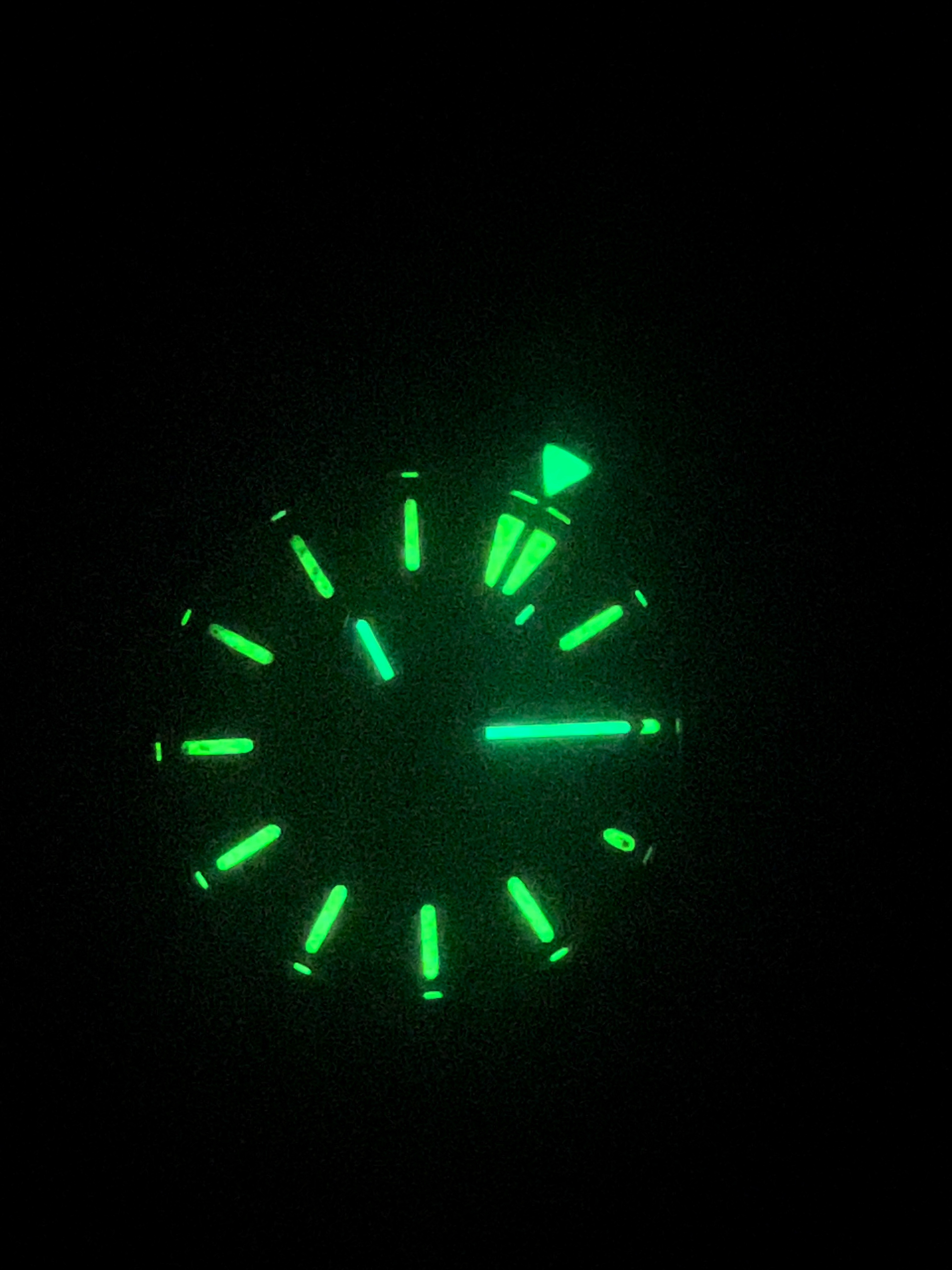 Dial: Background black matt vintage. Indexes vintage white (old radium) printed with Superluminova C3.