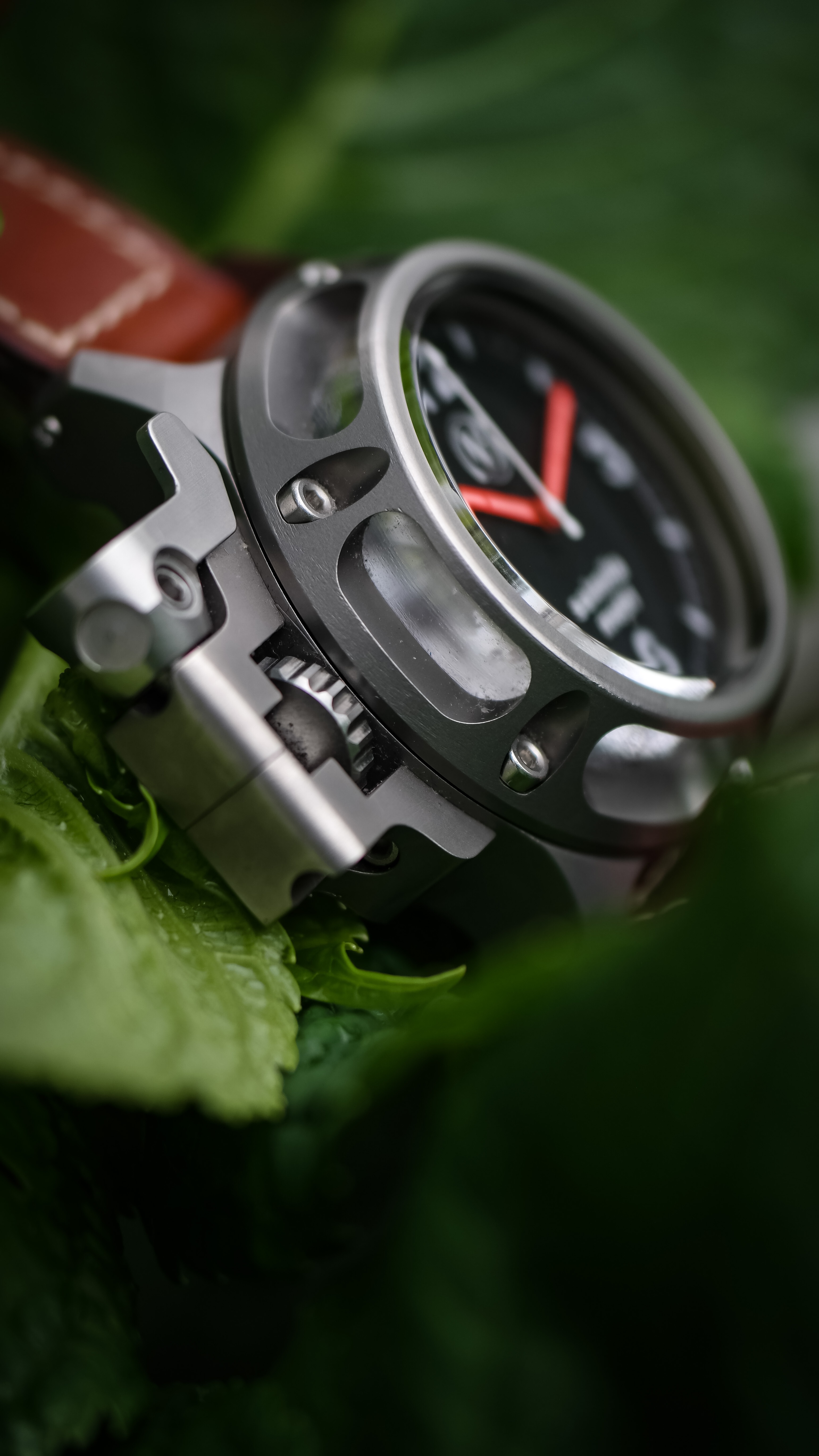 It’s going to take me a long time to give proper attention to all of these details. Obviously the crown locking system is an attention hog. It’s not only difficult to deter my eyes from it, but it’s equally difficult to not want to constantly fidget with it. To operate the locking mechanism you push the top long lever that is shaped like the letter L, pushing it away from the case, which unlocks the crown. Then you are free to operate the large crown to manually wind the movement, or pull it out a click to set the time. Not only is this mechanism beautiful designed from an aesthetic perspective but it is also beautifully designed from a functional perspective. It all operates with such a smooth fluidity yet feels incredibly solid. That was one of my issues with the U-Boat U42 watches I used to own. The crown design was cool, but felt so incredibly cheap and flimsy.
