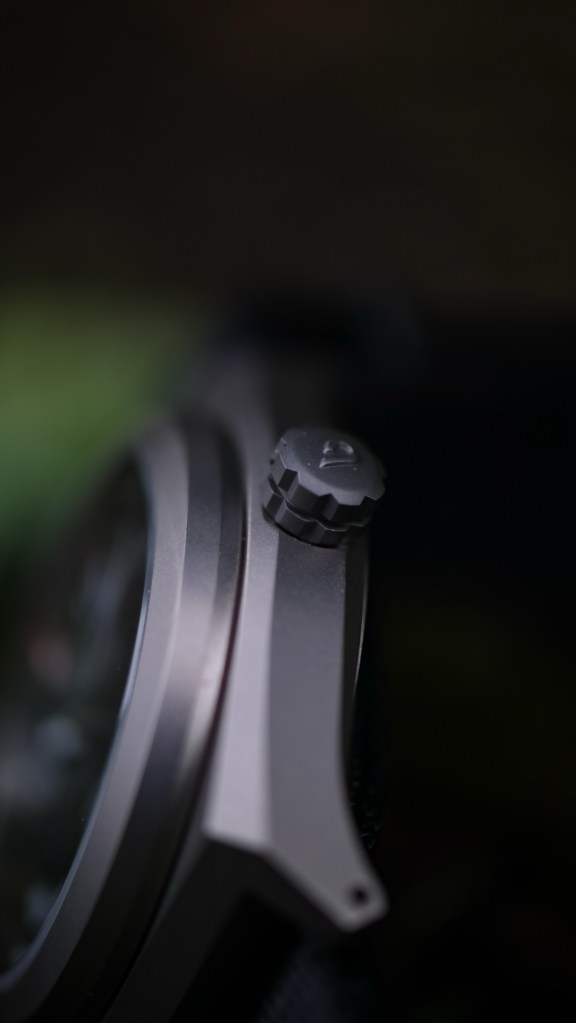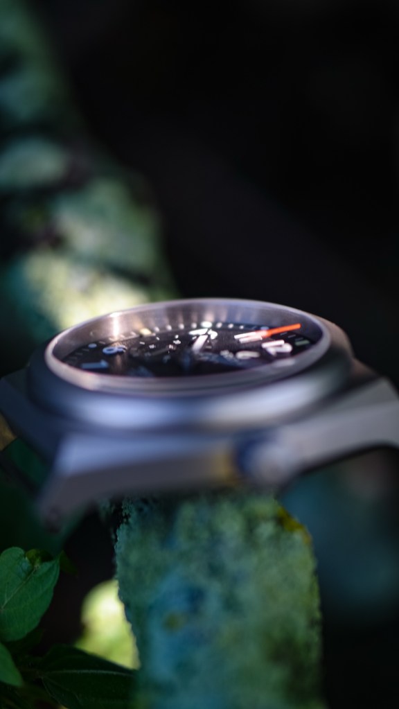 The dark titanium case is something that I took initial notice of upon handling this watch. It gives this watch a rugged, tool aesthetic which teamed with this 24hr textured dial screams “I am a tool to be abused for adventure purposes because I can surely handle it!