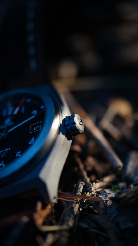 I love that the lugs on the Venture Wayfarer are drilled. I wish that Boldr would take it a step further and add in screw bars for that added security. In my opinion, it would take Boldr’s watch a step further. Boldr’s crown game needs zero improvement because it’s already perfected. This crown is easy to grip, operates smoothly throughout screwing/unscrewing action, setting the time/date, and winding the Japan Miyota 8217 automatic movement with hacking seconds.