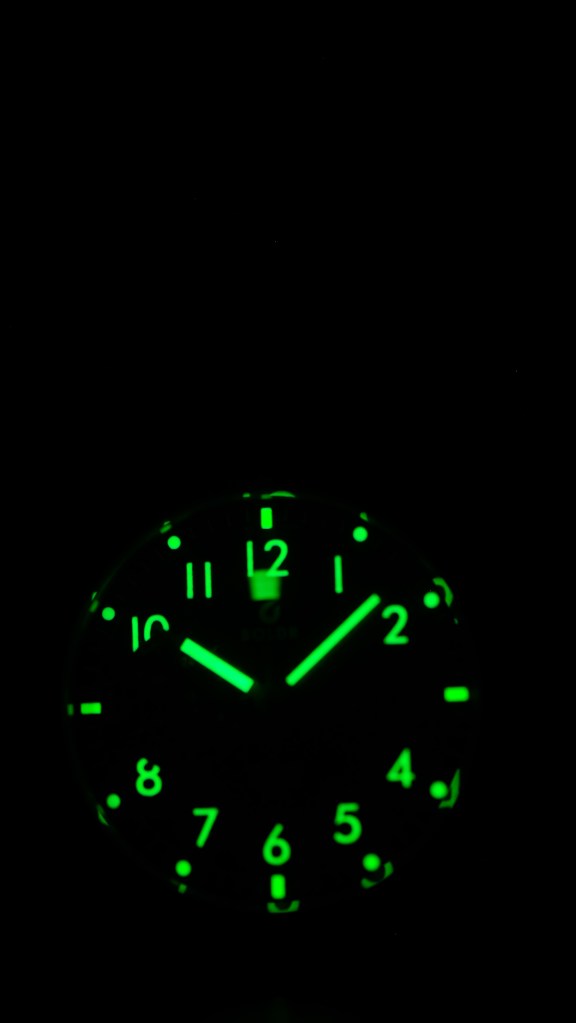 I love how the hands catch and play with the light. These are exactly how a tool watch hands should be, NOT POLISHED! This is how a tool watch case should be, NOT POLISHED! Boldr got it absolutely right with this watch and they made a great beater of a tool watch. It’s a great grab and go watch for any kind of adventure. It wears smaller than the dimensions imply because of the lug style. Those of you who like a watch to disappear while on the wrist, this is a great option for you.