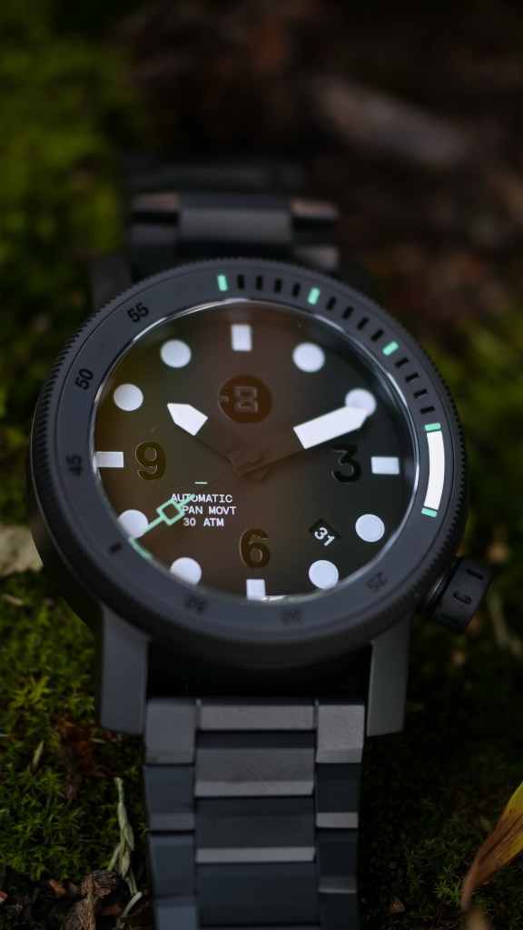 The PVD titanium makes this watch so much more. Not just in a stealthy sort of way, but just in a tool badass kid of way. I absolutely love that about this watch. Something else about this is how that same badass feel was carried over onto the dial. For a watch under $500, it sure does manage to hit a lot of details that I look for on a watch.