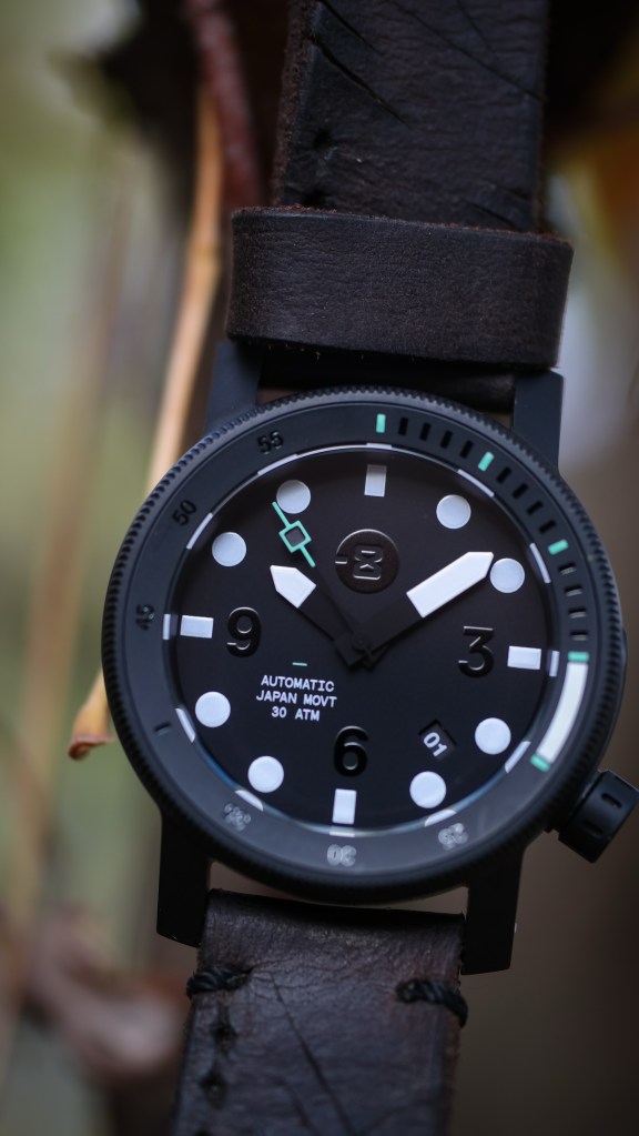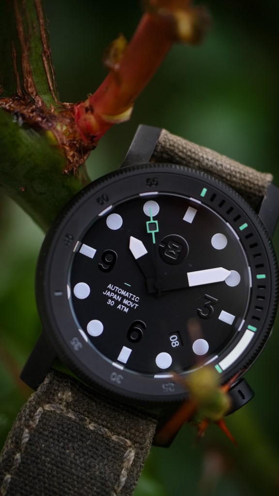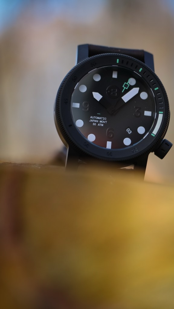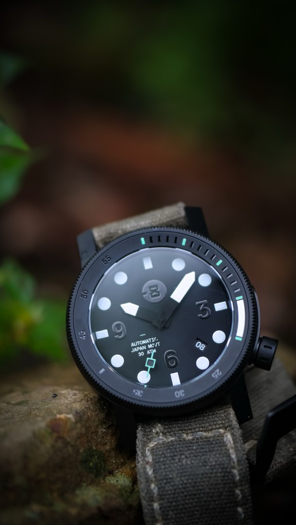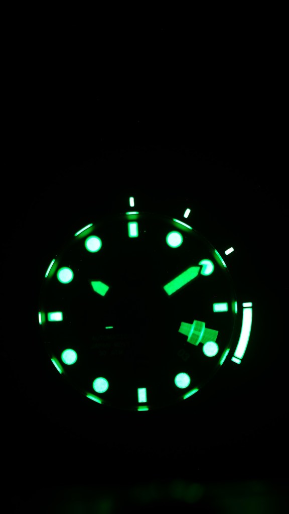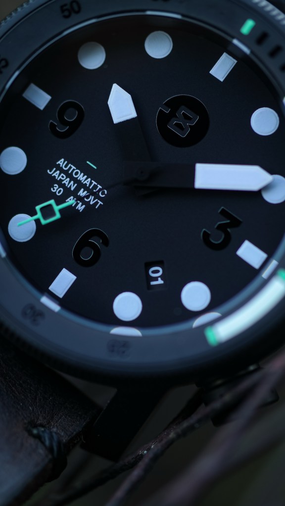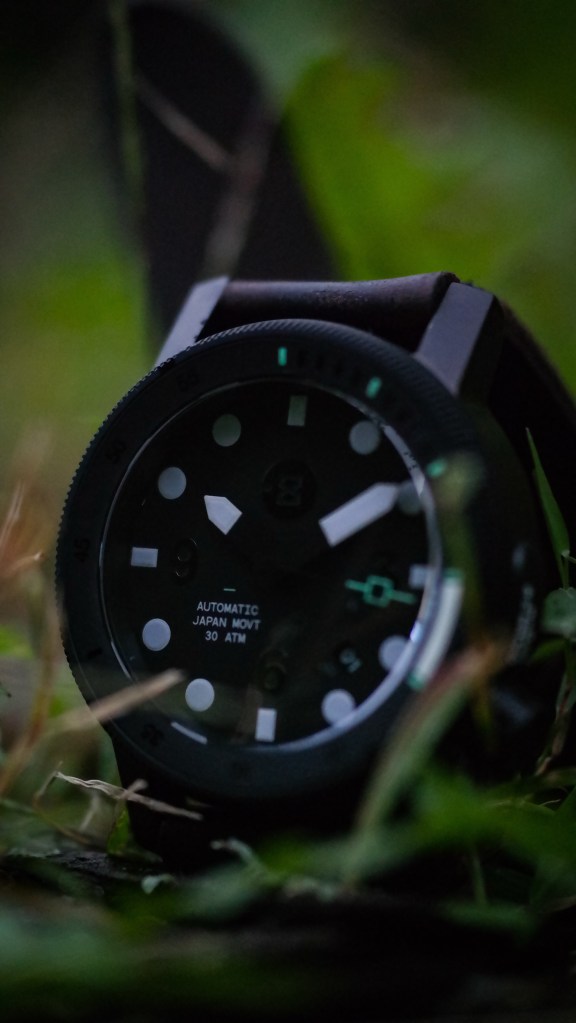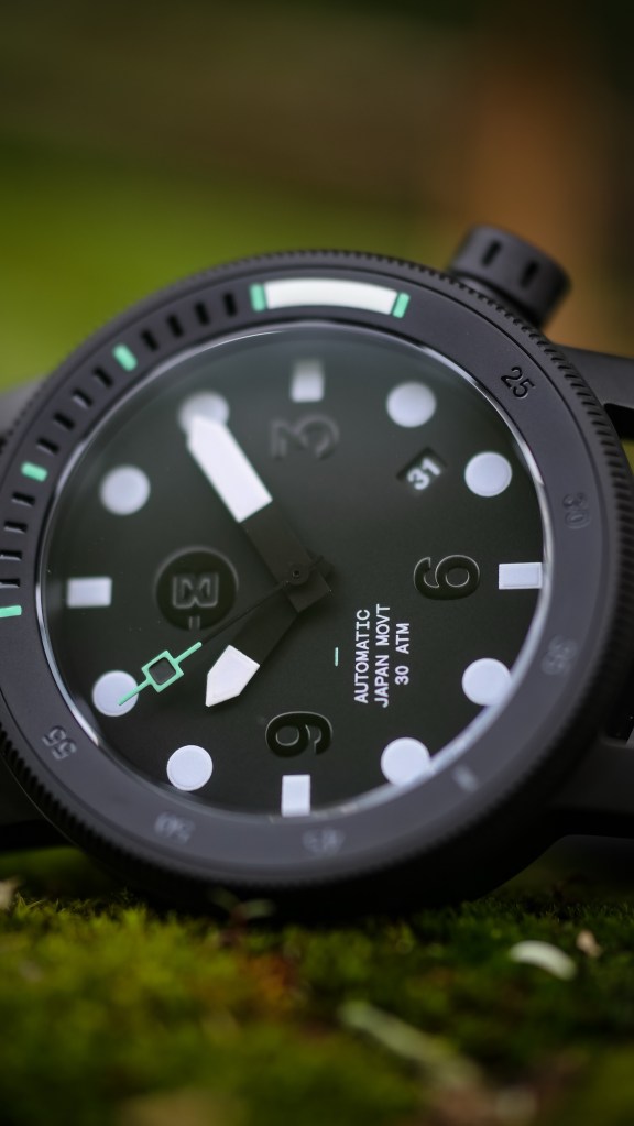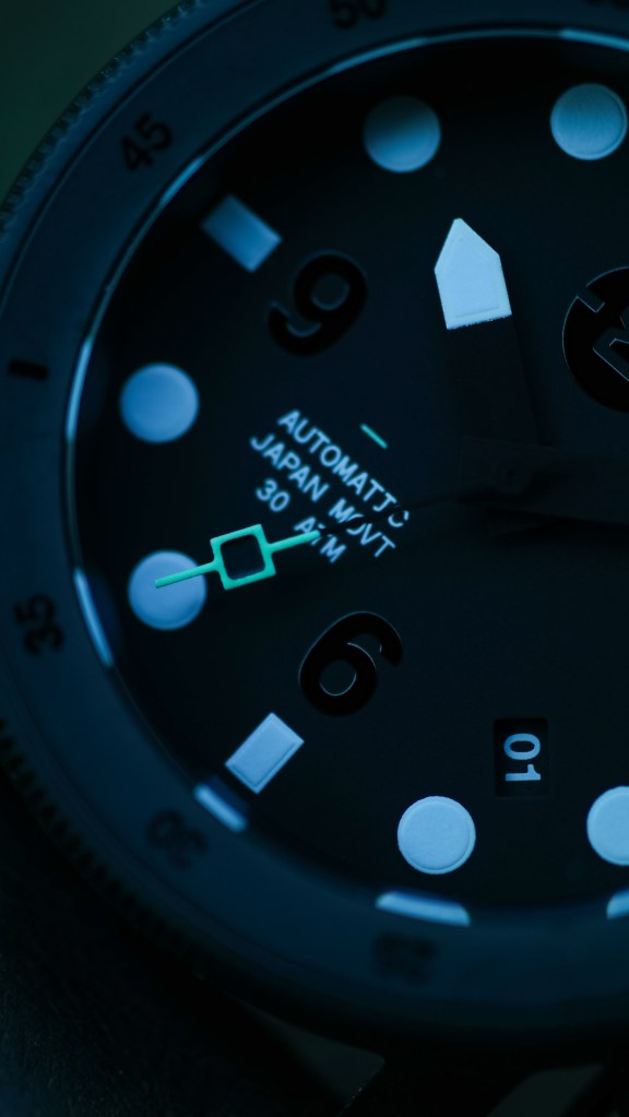 Minus 8 blackened Friday just hits different. The Diver 2.0 has so many details that appeal to me. There’s very little so far that I find fault with on this watch. If I have to nit pick, I would say that the bezel could be tweaked a bit for a more smooth and precise “ratchet” action. This bezel isn’t horrible by any means, I just think it could be a bit smoother. I am not comparing it to watches that cost 6X more than the Diver 2.0, I am just comparing to other sub $500 watches. I do like the bezel design and the use of the mint green accents that nicely match the second hand.