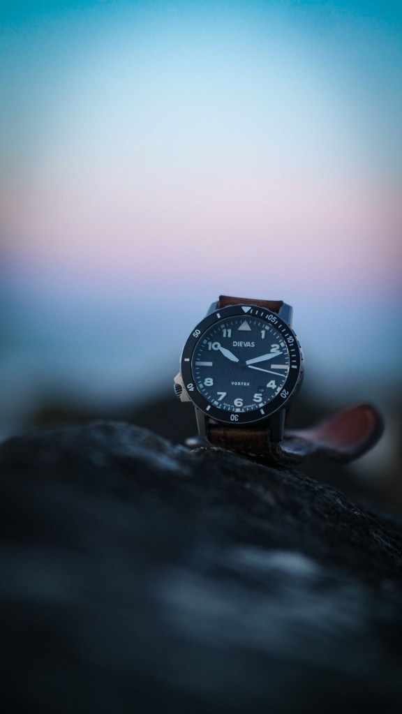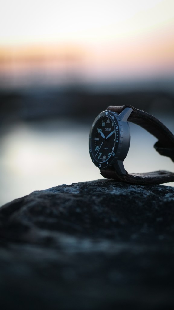 This watch wears with a nonexistent quality. It’s a watch that you can forget about while wearing it until you need it. The best part, it’s a watch that you don’t have to worry about while putting it through its paces. There’s nothing better than when I put this watch on and I don’t have to give it a second thought whether if I am changing the oil in my jeep, or climbing the side of a cliff with jagged rocks or at the skatepark with my kids. I know that Dievas made a watch that can handle every environment and every weather condition. This is enhanced because of their Ultrawerk™ Titanium.