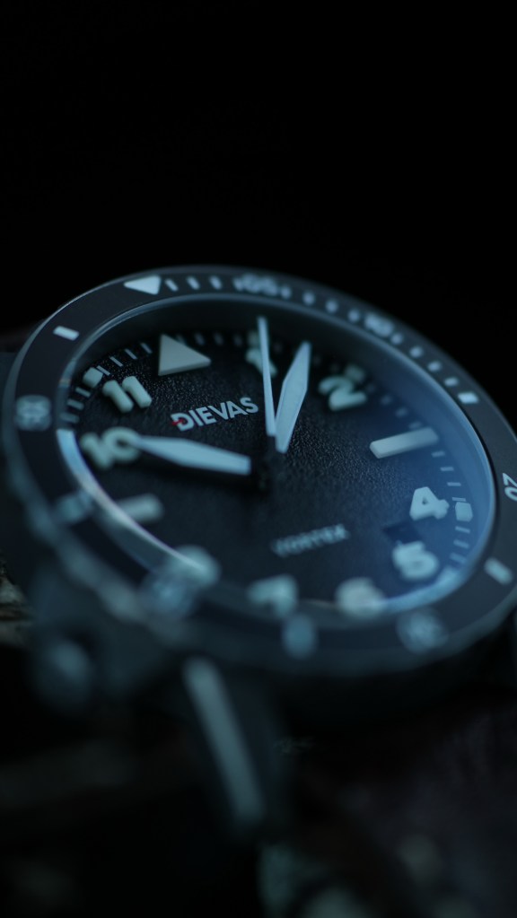 The legibility was given the same amount of thought and planning as the case itself. This is apparent through the 3D applied numerals, the perfectly proportioned hands and of course the lume. In my opinion, this is the most well rounded watch that Dievas has released. It will appease both the average watch enthusiast and those Dievas diehards like myself. I respect what Dievas has managed to do with this watch because they retain their German fortified engineered instrument DNA but managed to offer something different in terms of aesthetics. This isn’t an easy feat! I commend Dievas on this achievement.