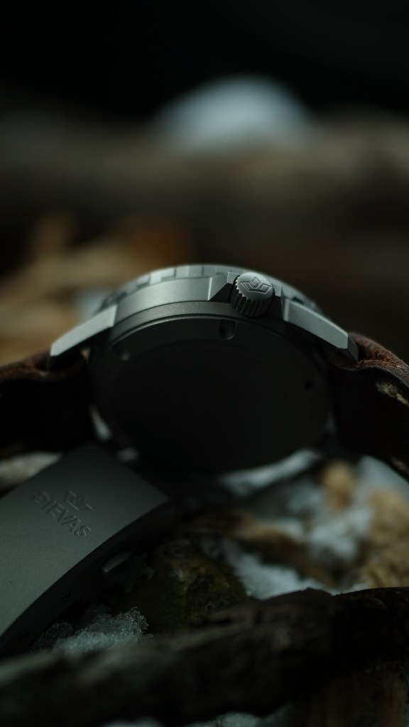 I am typically not a fan of textured dials but this dial is different. My Ennebi Seimila Metri had a textured dial but there was a sparkle element in the textured dial that ultimately led me to getting rid of the watch. I don’t bond with polished finishes or anything that sparkles on a watch. What I like about what Dievas did is they kept everything matte, like a true tool watch should.