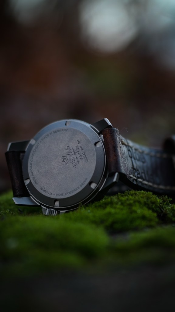 This piece resonates with me on a level that I can’t quite put my finger on the why, but it does. Could it be the grade 5 titanium case or the matte black dial? I am not sure but all that I know is that I am fascinated with this watch. There is something extremely special about Dievas. I appreciate the German engineering. It’s what makes me gravitate towards fortified engineered instruments. Dievas has a quiet confidence.