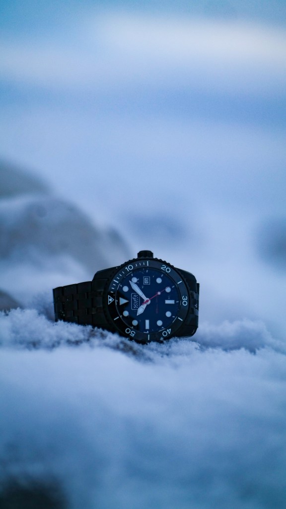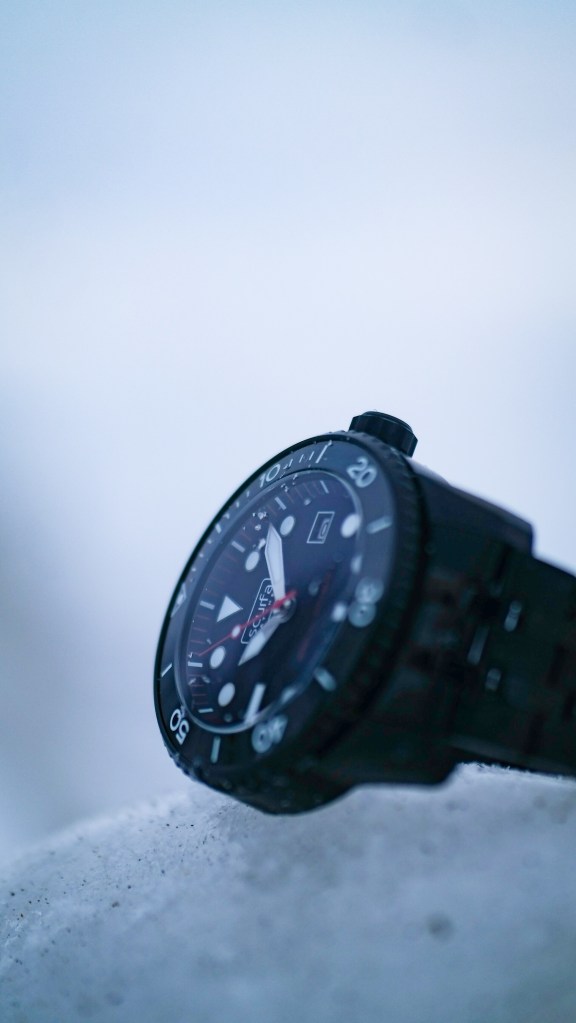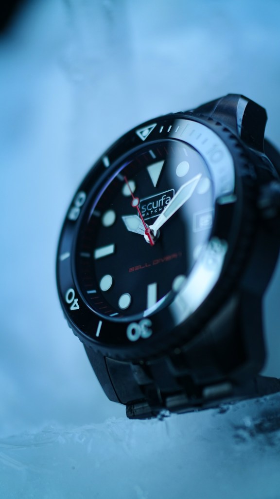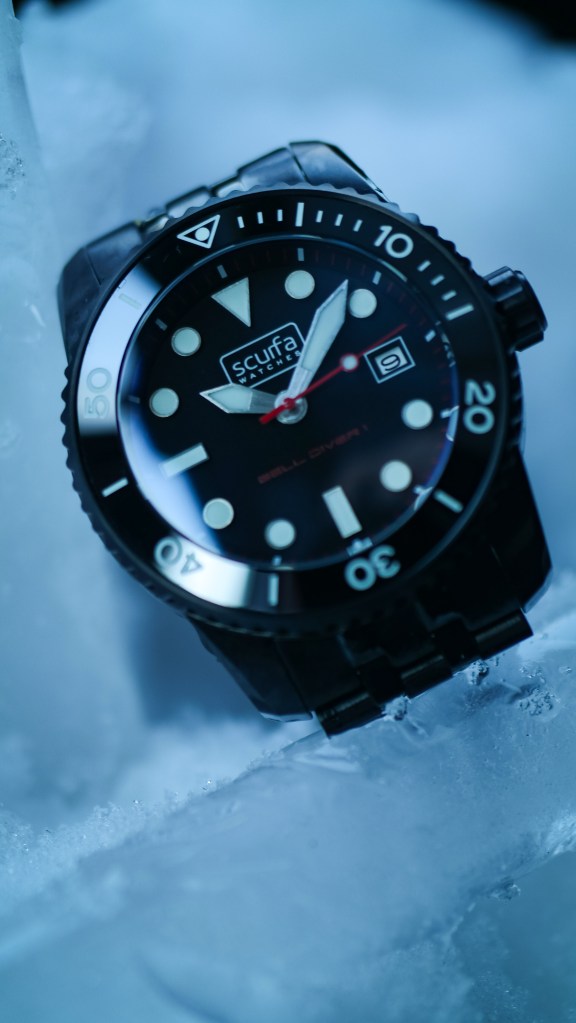 Ahhhhhh the @scurfawatches Bell Diver 1 in badass black PVD. In my opinion, it’s the toughest Scurfa in the line up! I know that this watch can handle the cold and frozen environment here because Paul tests his watches in the harsh North Sea. Paul being a commercial diver gives Scurfa watches a deeper authenticity. This is Bell Diver 1 in PVD has such a great look to it. The red accent add to its refined yet menacing appearance.