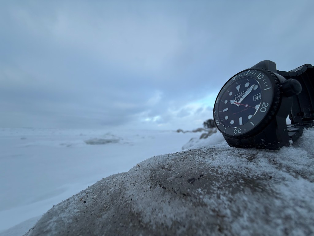 Such a cool caseback needs to be the lead shot. I was not prepared for the wind and cold. Under-geared in terms of my outdoor gear. Thankfully the Scurfa was prepared and handled itself perfectly. When it comes to affordable quintessential beaters, Scurfa will always be on that list.