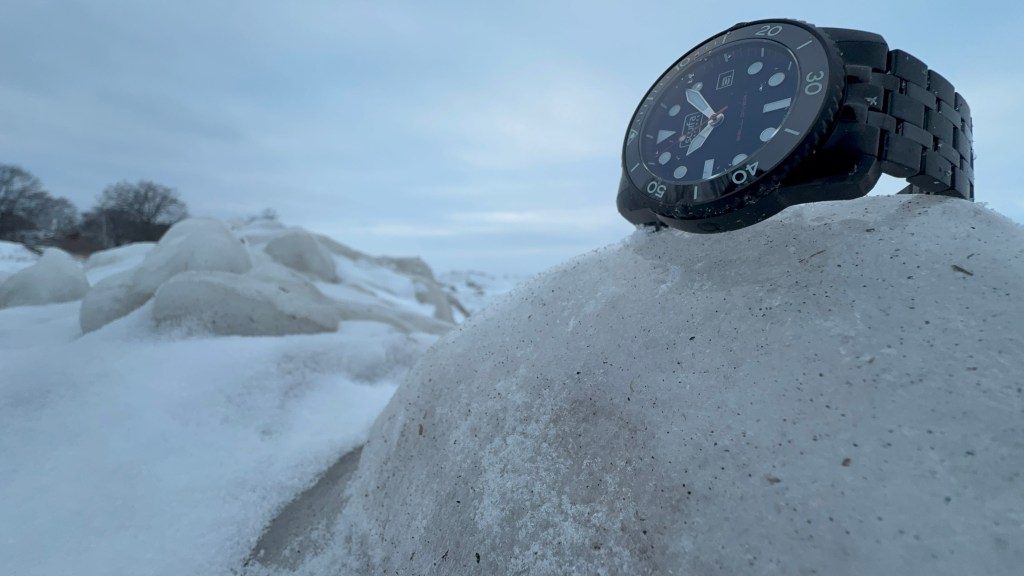 I always look forward to getting hands on with a Scurfa watch. I reviewed my first Bell Diver 1 ten years ago. It’s cool to see how some things remained consistent while other details were improved upon. The first notable detail is the crown. It feels much more substantial in both size and how it operates. I appreciate how smooth it functions. I was out in below zero temperatures for these pics and I easily was able to unscrew & screw down the crown with gloved hands.