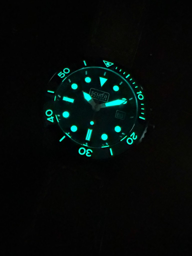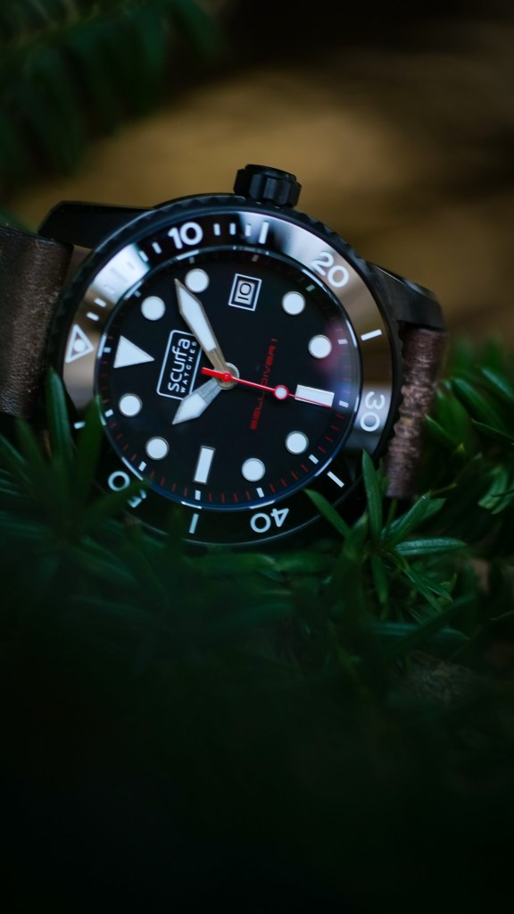 Paul definitely knows how to give us a watch that can handle every day abuse without busting the wallet. A watch that is packed full of details. A killer caseback, a signed screwdown crown( 8mm screw down crown with 3 gaskets and the BD1 logo) , a tough PVD case…and a cool little valve. Valve you ask?!? Yes a valve. A Heliox escape valve is built into the watch case. This has been thoroughly tested by Paul himself at different depths and gas mixtures, deepest decompression 154 metres to the surface. It’s that Scurfa authenticity that adds to the magic of their watches.
